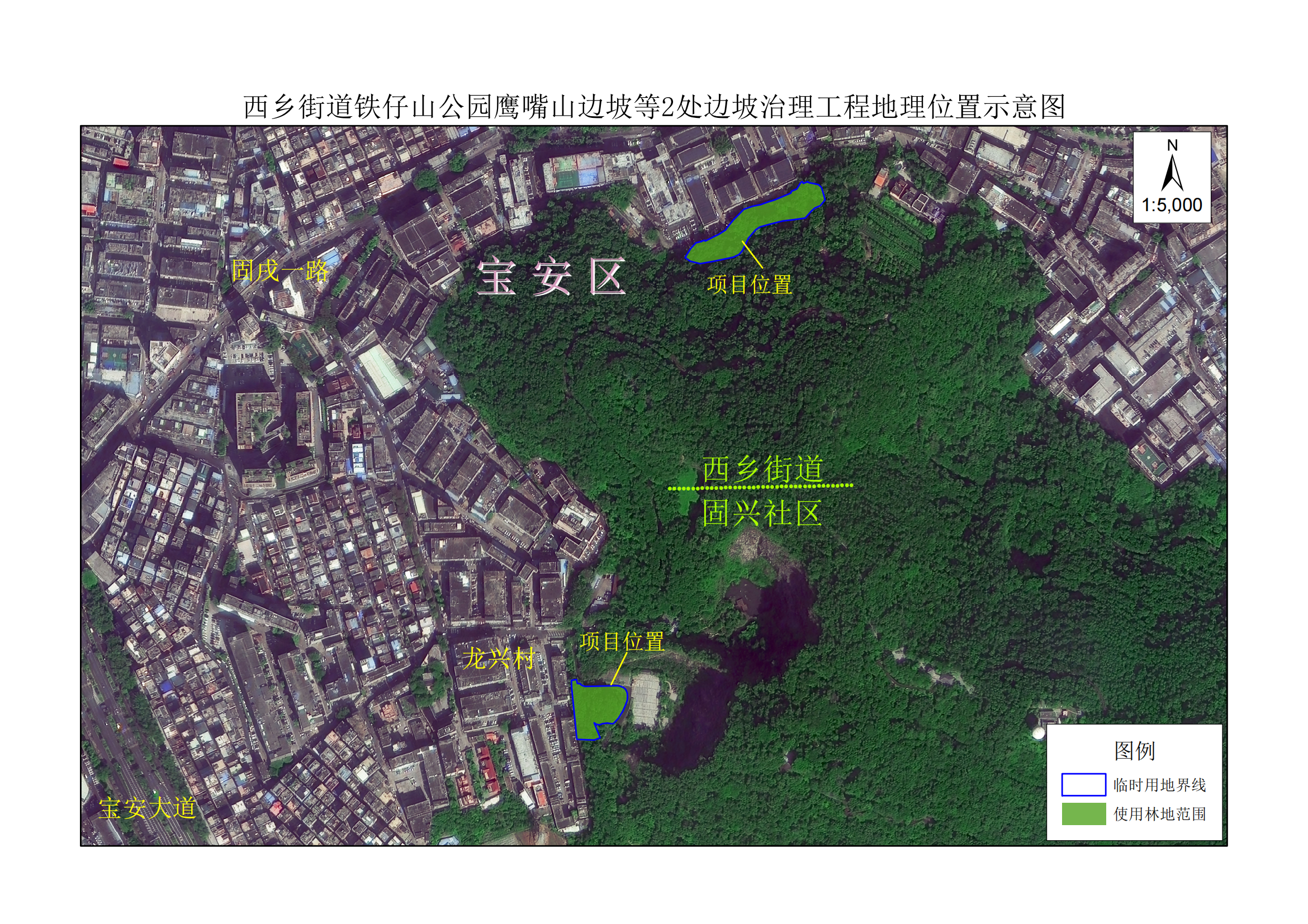 附件:西乡街道铁仔山公园鹰嘴山边坡等2处边坡治理工程位置示意图