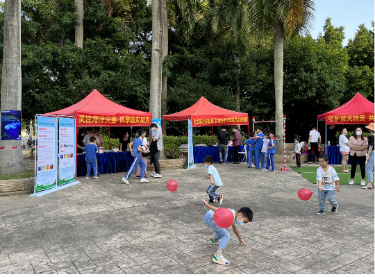 活动通过悬挂横幅、摆放展板、发放宣传资料、有奖问答、趣味游戏等形式,吸引市民积极参与,向群众普及海洋灾害的主要类型及其危害、预警信号等相关知识,重点宣传如何识别、应对海洋灾害。