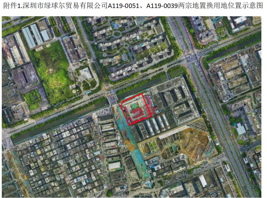 附件:1.深圳市绿球尔贸易有限公司A119-0051、A119-003两宗地置换用地位置示意图