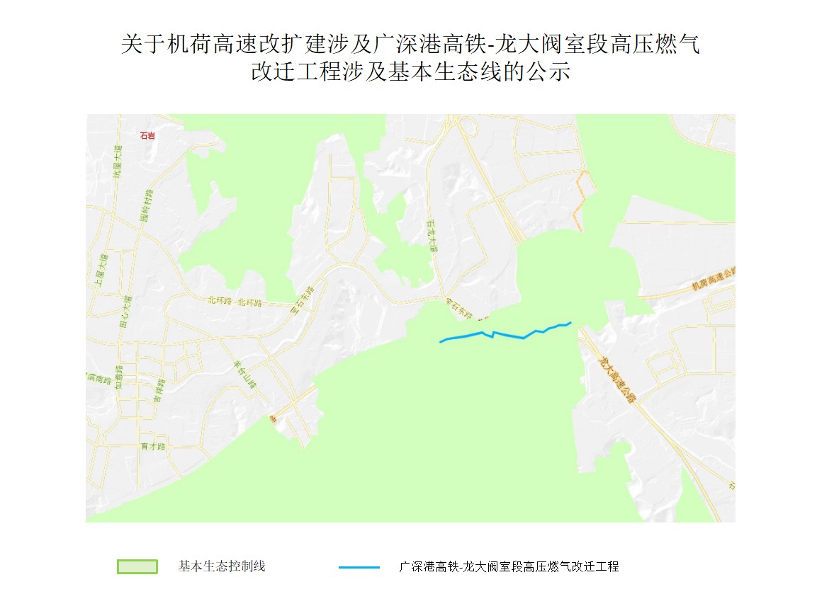 深圳市规划和自然资源局宝安管理局关于机荷高速改扩建涉及广深港高铁-龙大阀室段高压燃气改迁工程涉及基本生态控制线的公示