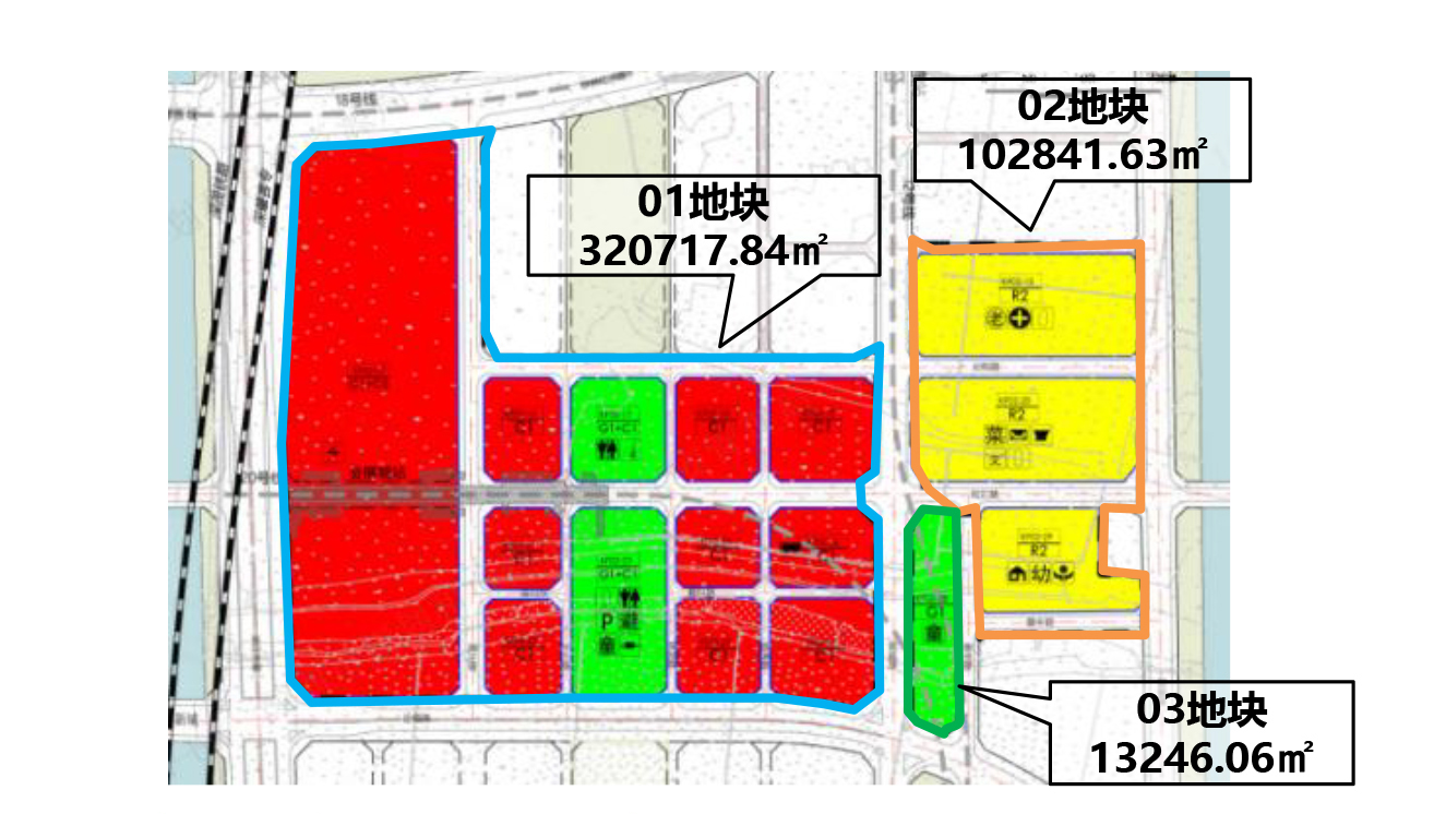 一、01地块从A301-0575宗地内分宗而来,该地块用地面积320717.84平方米,土地用途为商业用地、游乐设施用地、公园用地、道路用地,用地面积分别为98187.54平方米、123896.77平方米、36762.22平方米、61871.31平方米,土地性质为商品房,土地使用年期为商业服务业用地40年(自2020年12月3日起至2060年12月2日止),计规定容积率建筑面积992881平方米,其中办公742500平方米、游乐设施100000平方米、商业92761平方米(含绿轴地下商业7291平方米)、配套酒店49000平方米、公共配套设施9720平方米,土地使用权利人为深圳融华置地投资有限公司。地块内市政道路、公园绿地由深圳融华置地投资有限公司建成后移交政府。