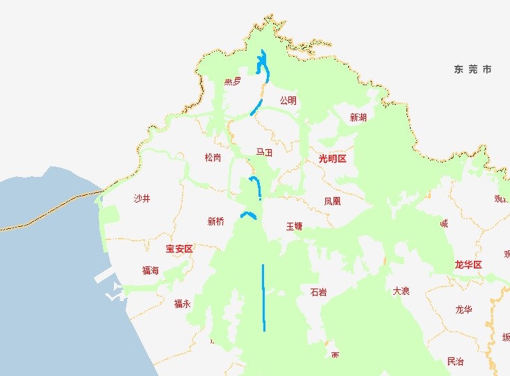 深圳市水务工程建设管理中心来文办理罗田水库——铁岗水库输水隧洞工程建设工程方案设计核查意见(市政类)。该项目位于燕罗、松岗、新桥、石岩、航城等5个街道,该项目范围总面积约为86620平方米,有79250平方米位于基本生态控制线范围。