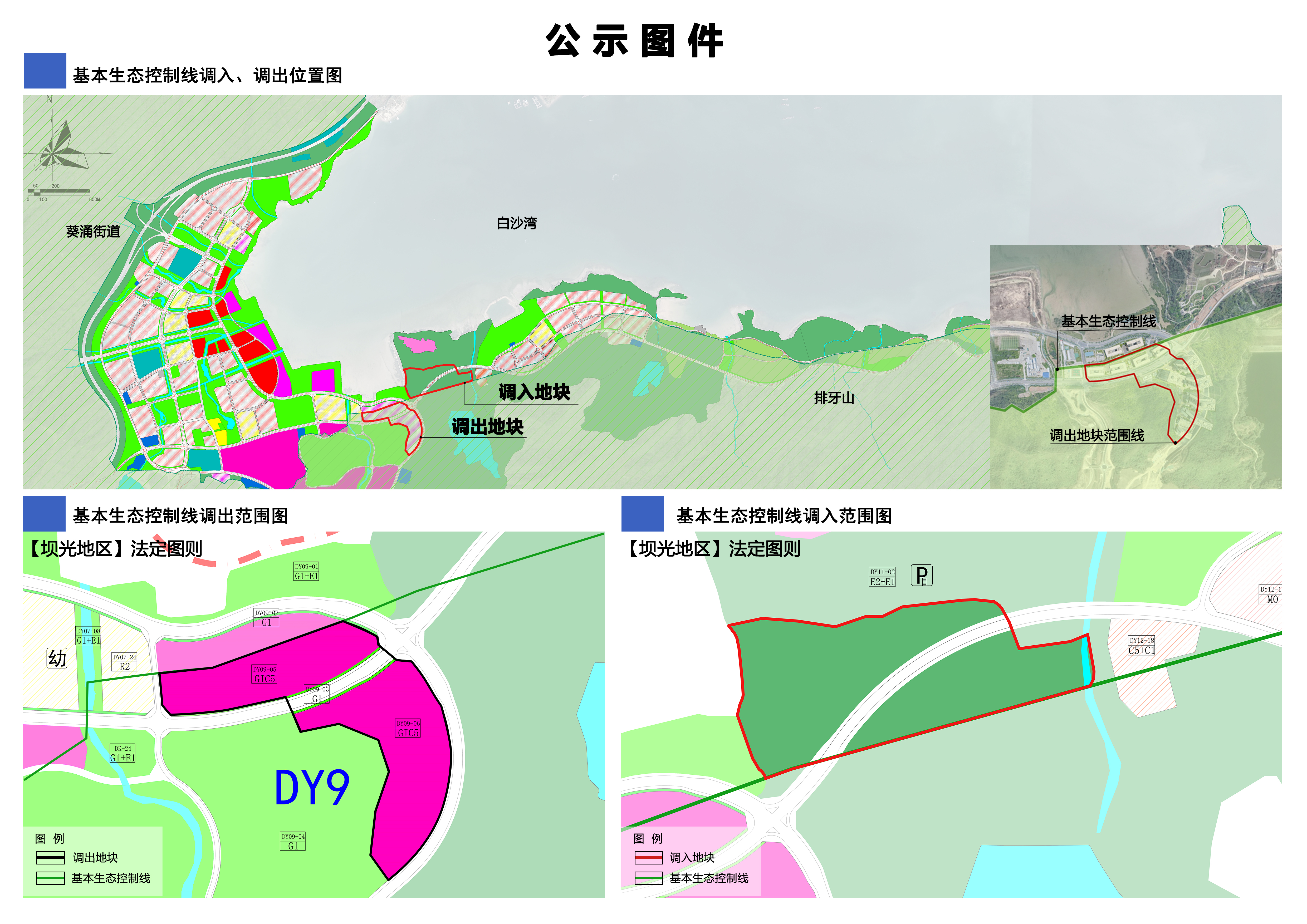 拟调入基本生态控制线用地位于大鹏新区葵涌街道坝光社区,用地面积91746.67平方米,空间上紧邻基本生态控制线,现状大部分用地为银叶树湿地园且生态环境较好。本次优化调整,有效调入地块面积为77790.85平方米,大于调出地块面积,保证了大鹏新区基本生态控制线总面积不减少,详见附图。