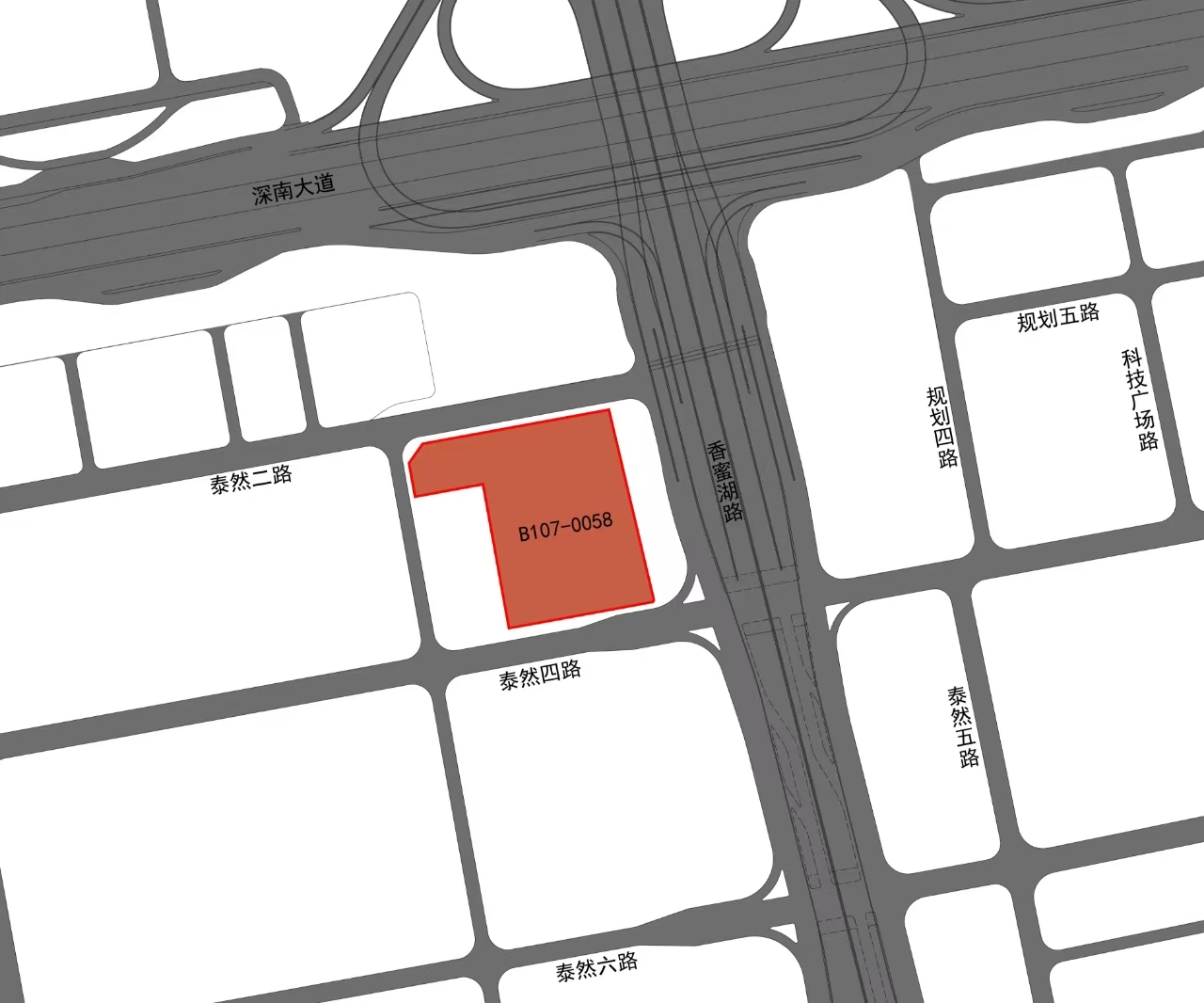B107-0058宗地位于泰然二路与泰然七路交汇处东南角,宗地面积11353.65平方米,用地单位为深圳市深业泰然新时代有限公司。该宗地已于2023年12月29日取得《建设用地规划许可证》(地字第4403042023YG0020342号),现用地单位来文申请变更宗地规划设计条件。根据公平、公正、公开原则,依据《中华人民共和国城乡规划法》《广东省城乡规划条例》等法规要求,对变更内容公示如下: