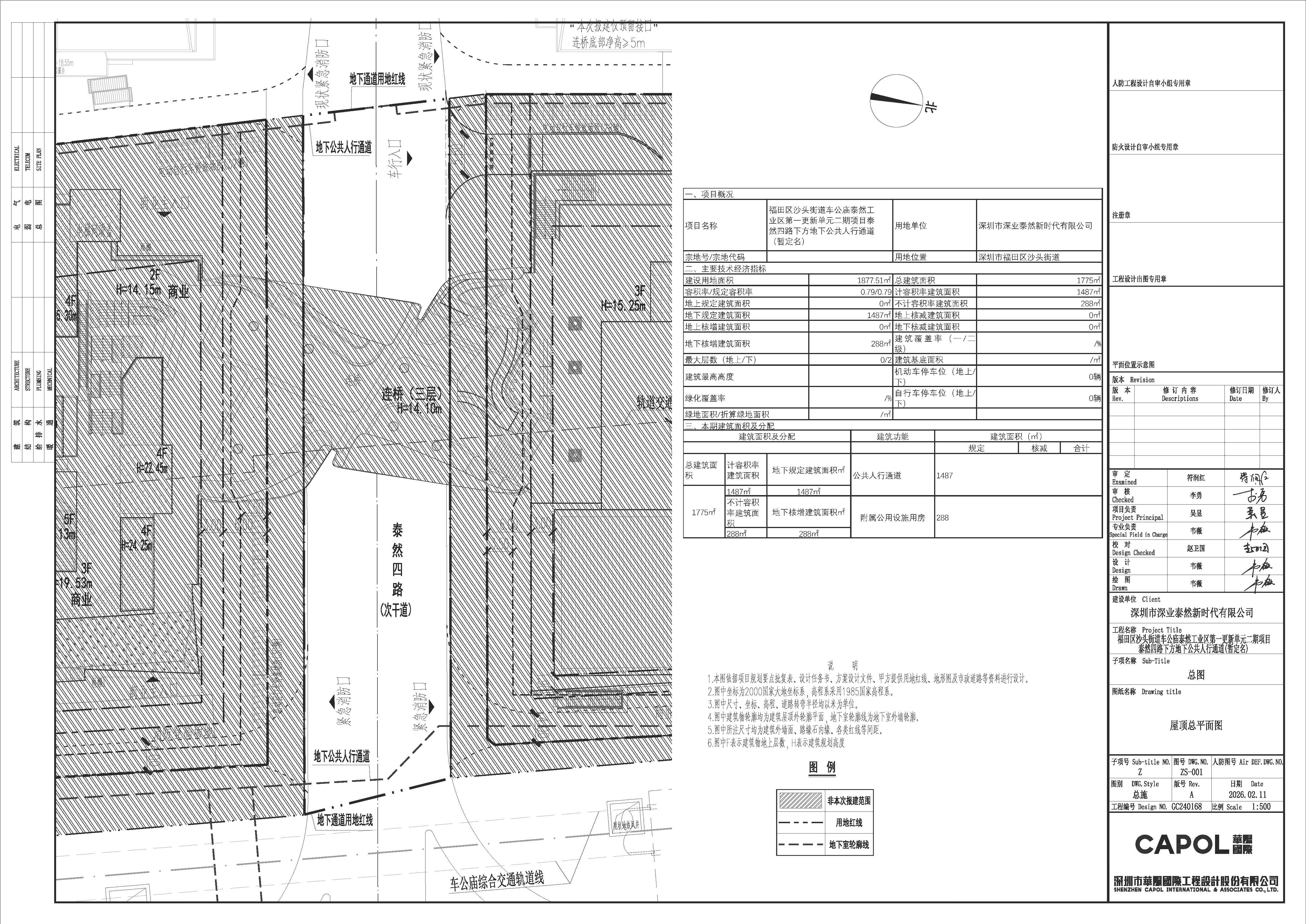 深圳市规划和自然资源局福田管理局关于福田区沙头街道车公庙泰然工业区第一更新单元二期项目泰然四路下方地下公共人行通道(暂定名)总平面图的公示