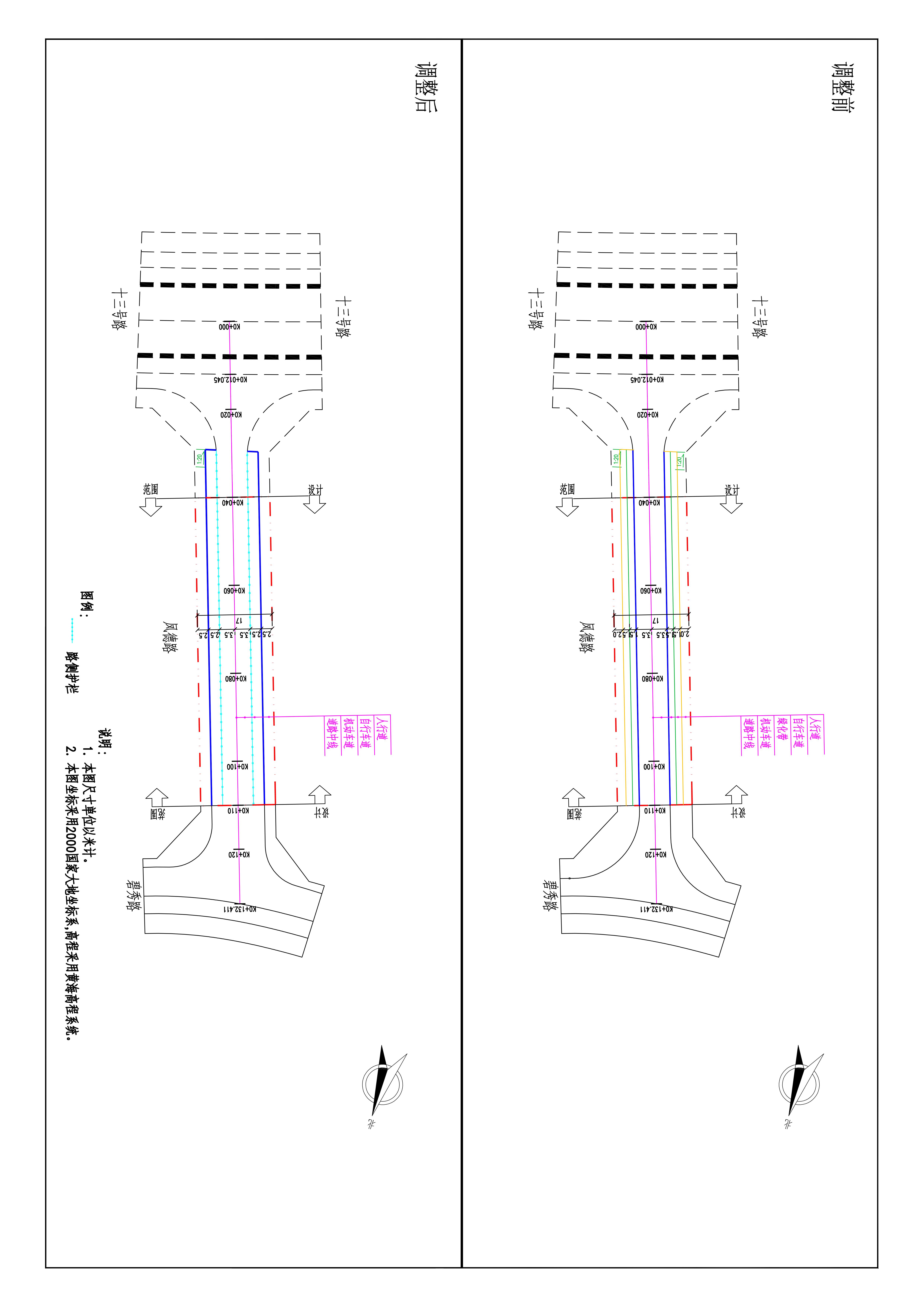 1.调整前道路设计横断面:2.0m(人行道)+1.5m(自行车道)+1.5m(绿化带)+3.5m(车行道)+3.5m(车行道)+1.5m(绿化带)+1.5m(自行车道)+2.0m(人行道)=17m。