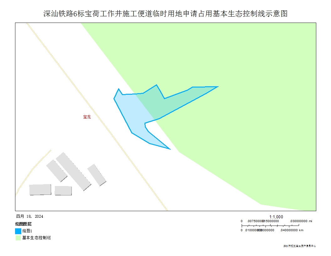 深汕铁路6标宝荷工作井施工便道临时用地涉及深圳市基本生态控制线836.98平方米,拟申请占用4年。具体情况见附图。