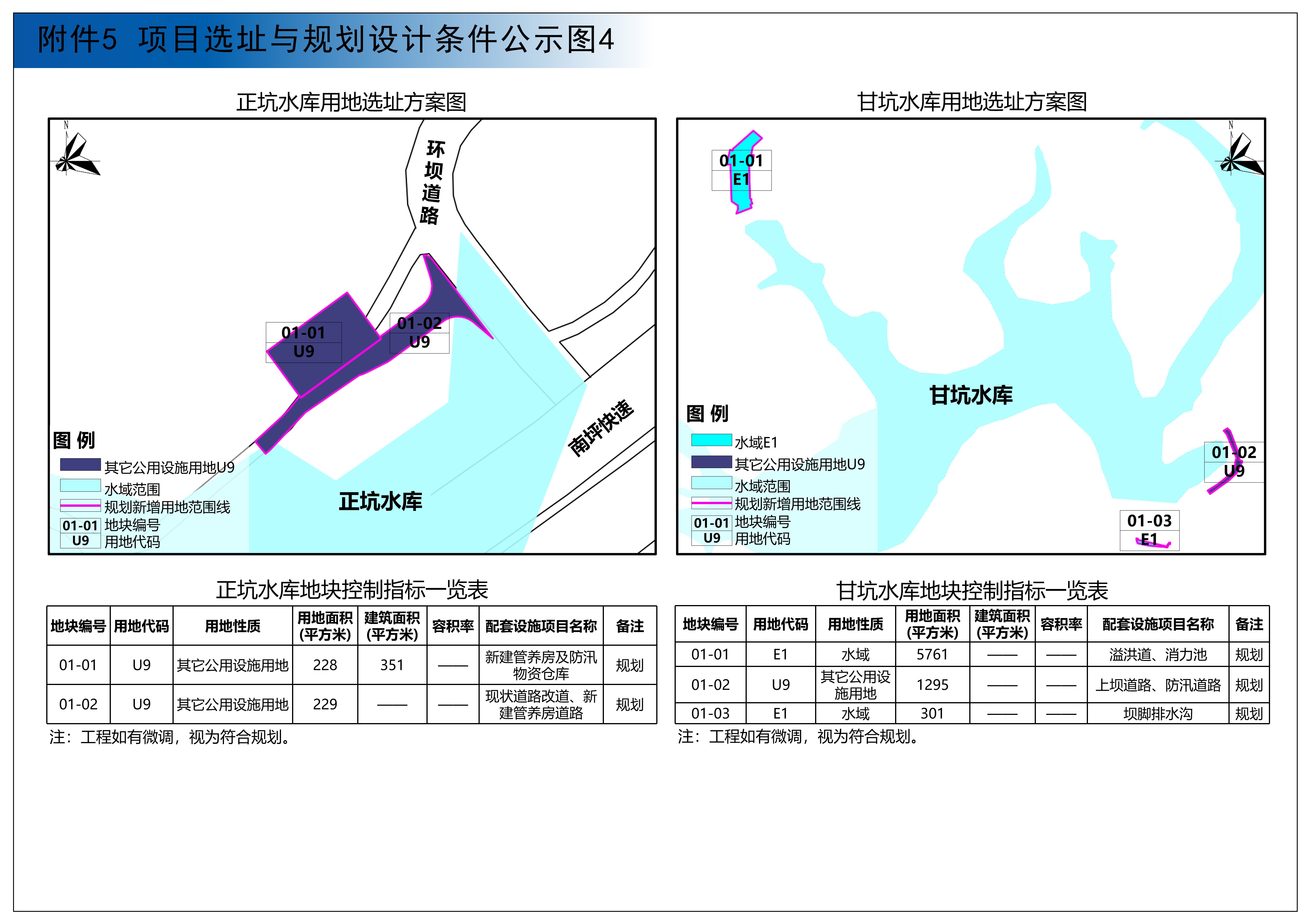 1.选址方案:龙岗区正坑水库除险加固工程配套设施选址总用地面积为457平方米,包括新建管养房及防汛物资仓库和现状道路改道、新建管养房道路等设施。