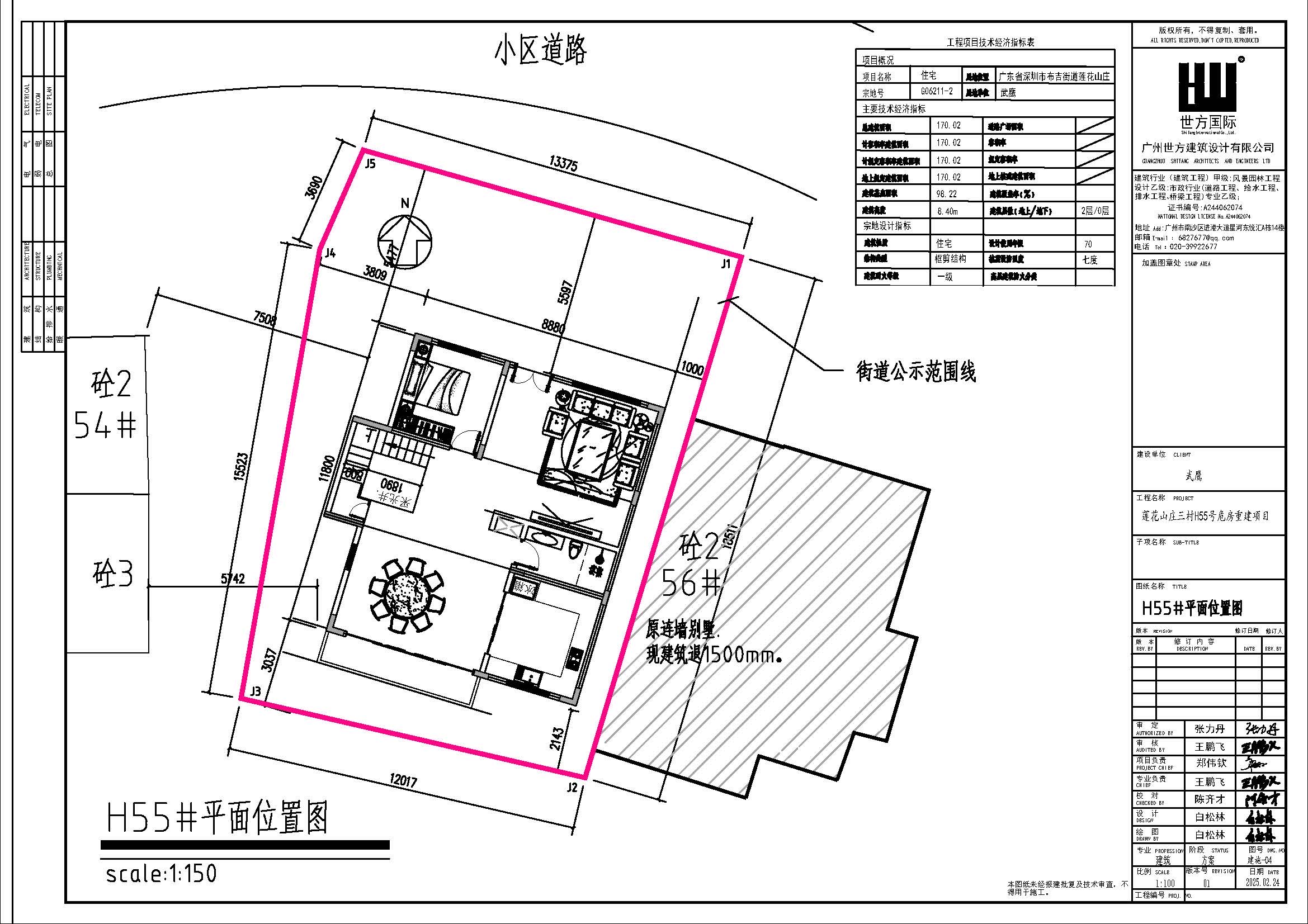 市民武鹰来文申报莲花山庄三村H55号住宅危房重建建筑设计方案,该房产位于布吉街道莲花路莲花山庄内,宗地号G06211-2,重建住宅2层,建筑面积170.02平方米,建筑高度7.50米,根据《深圳市危房重建规划管理规定》第十条要求,现对该建筑重建方案设计予以公示。