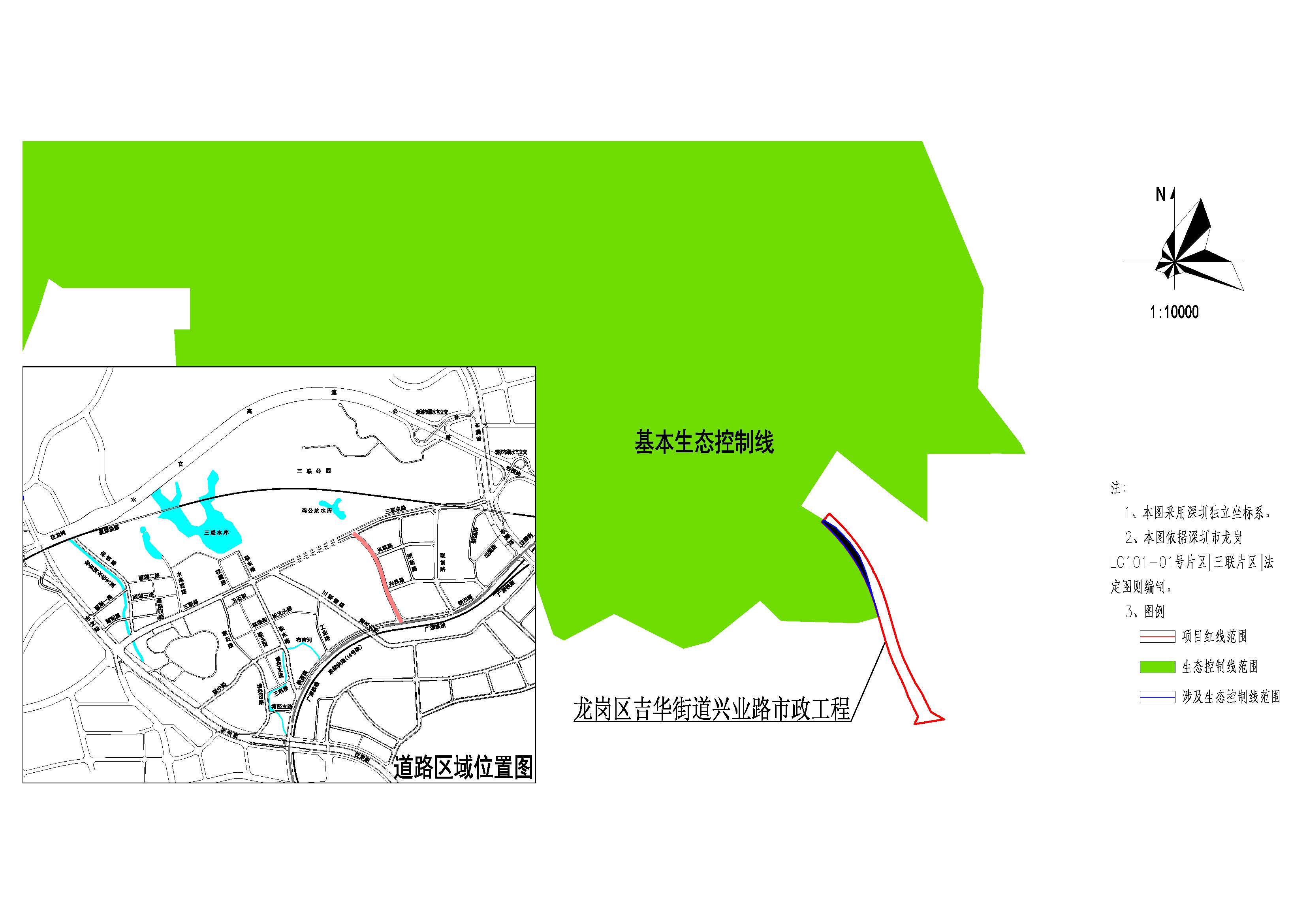 深圳市规划和自然资源局龙岗管理局关于吉华街道兴业路市政工程项目选址范围涉及基本生态线的公示占用基本生态控制线情况的公示