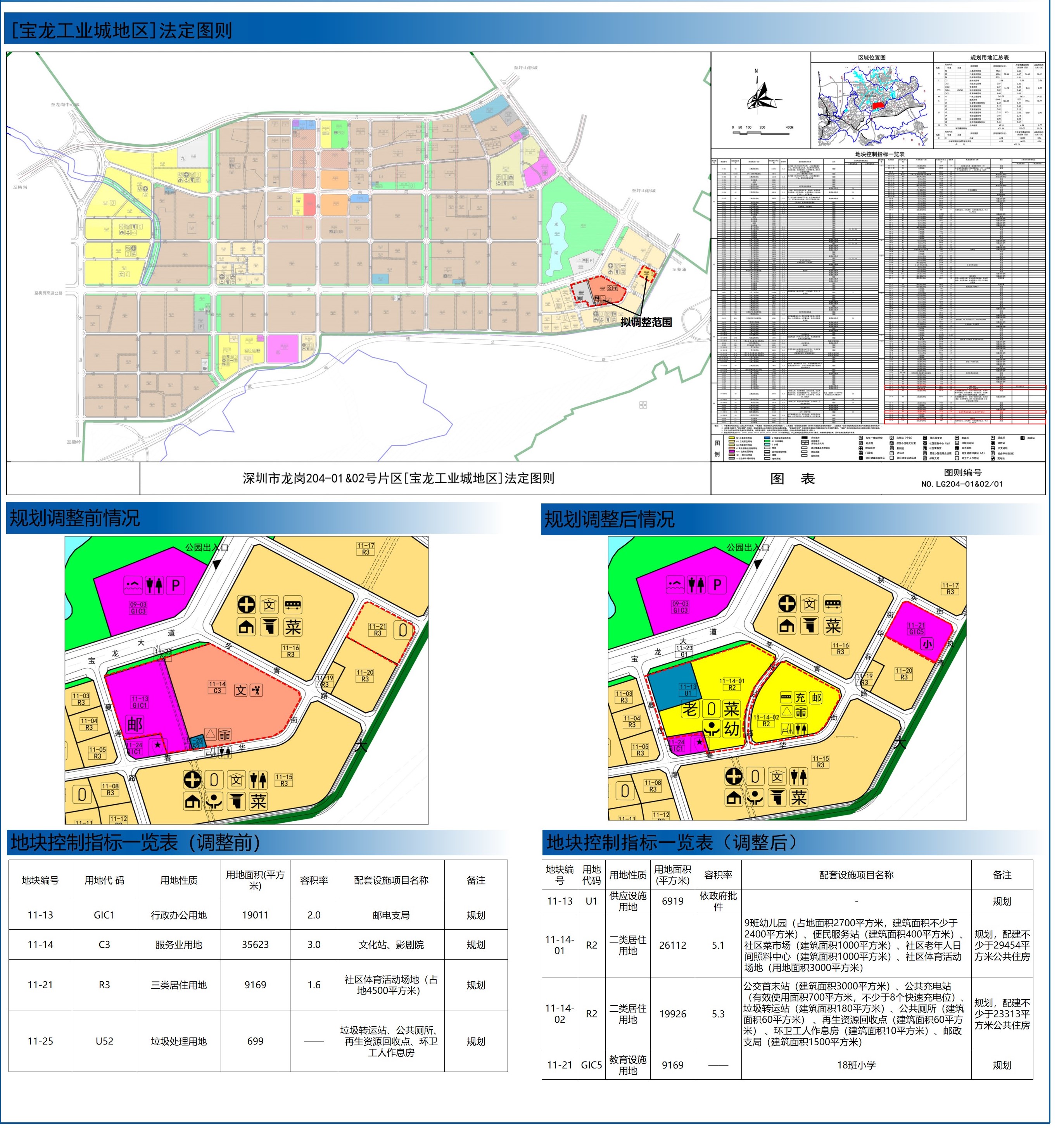 深圳市规划和自然资源局龙岗管理局关于龙岗区[宝龙工业城地区]法定图则11-13、11-14、11-21、11-25地块规划调整的公示
