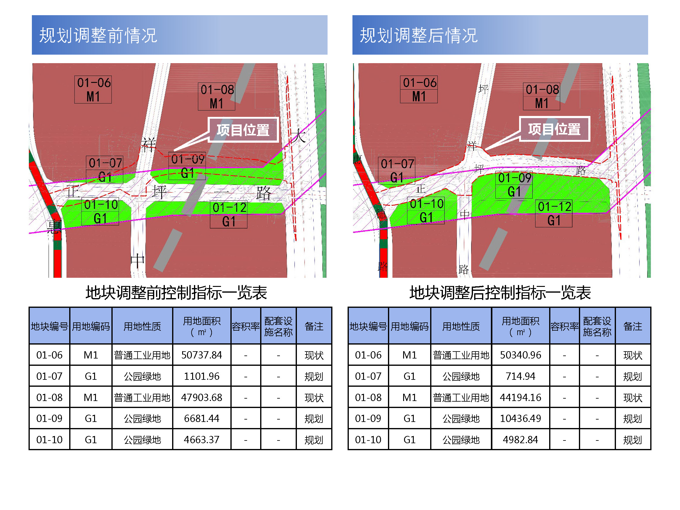 详见调整前后地块规划控制指标一览表及附图。