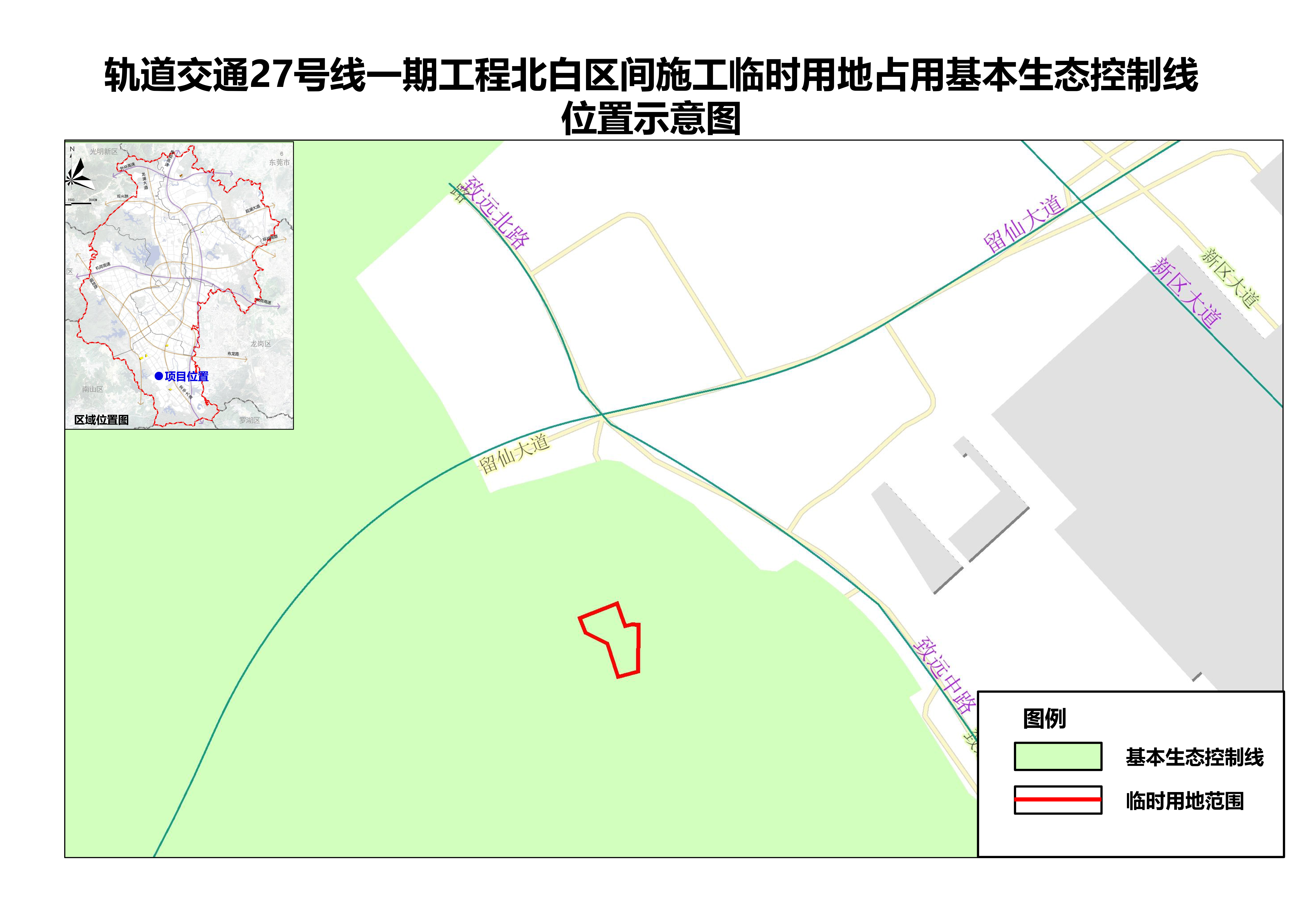 市规划和自然资源局龙华管理局关于轨道交通27号线一期工程北白区间施工临时用地涉及基本生态控制线的公示