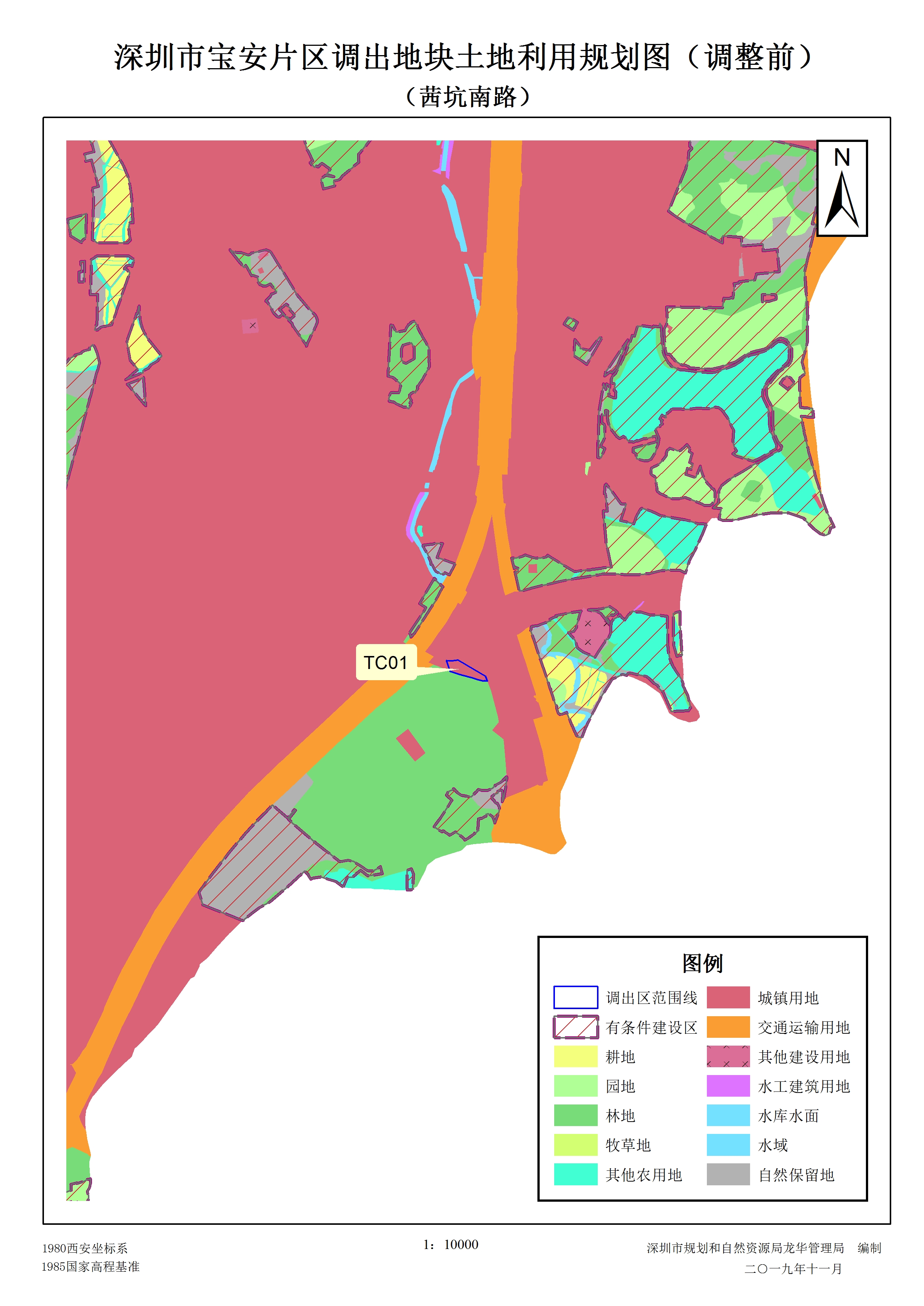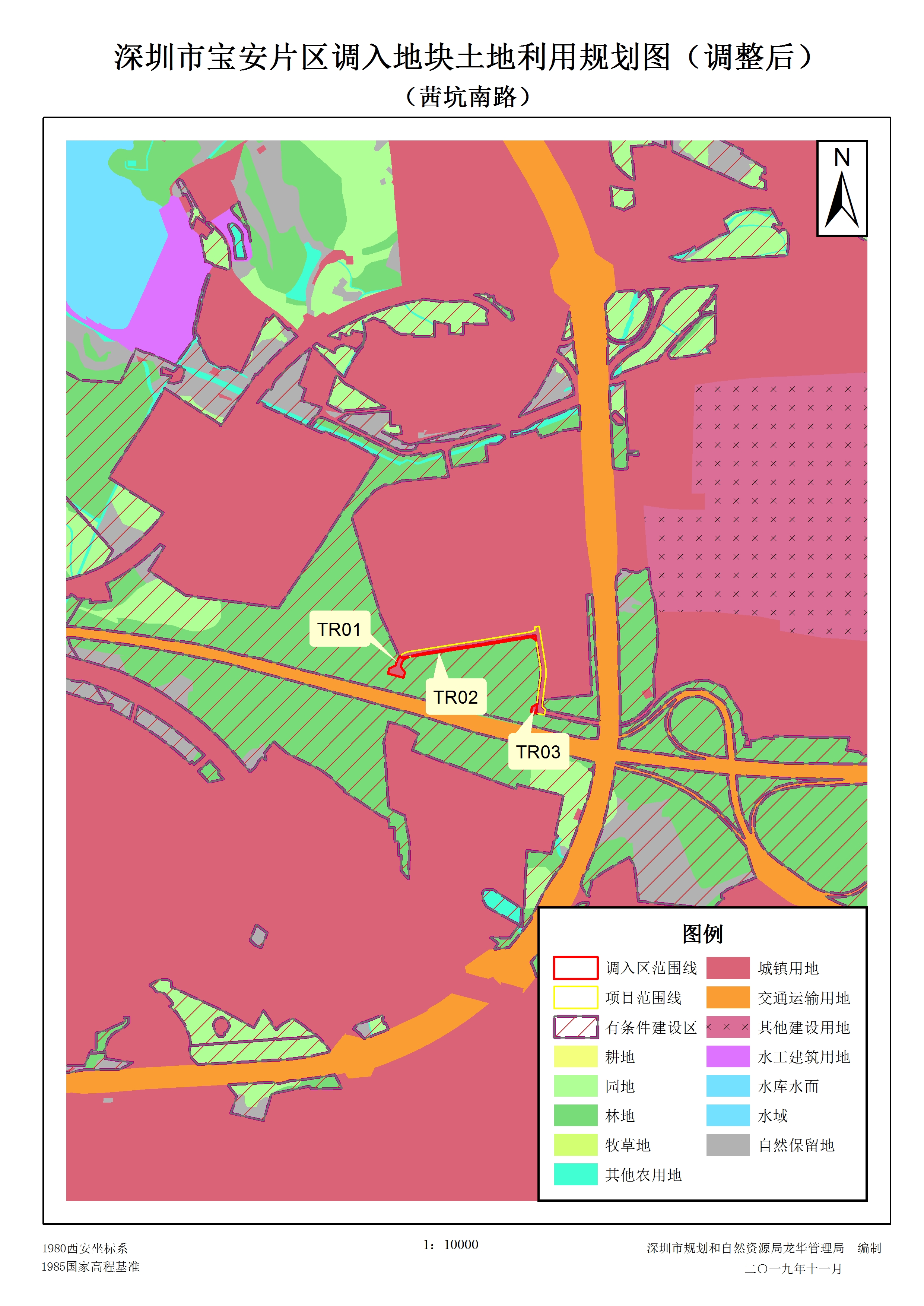 深圳市规划和自然资源局龙华管理局关于深圳市宝安片区土地利用总体规划(2010-2020年)有条件建设区使用方案(茜坑南路)的公告