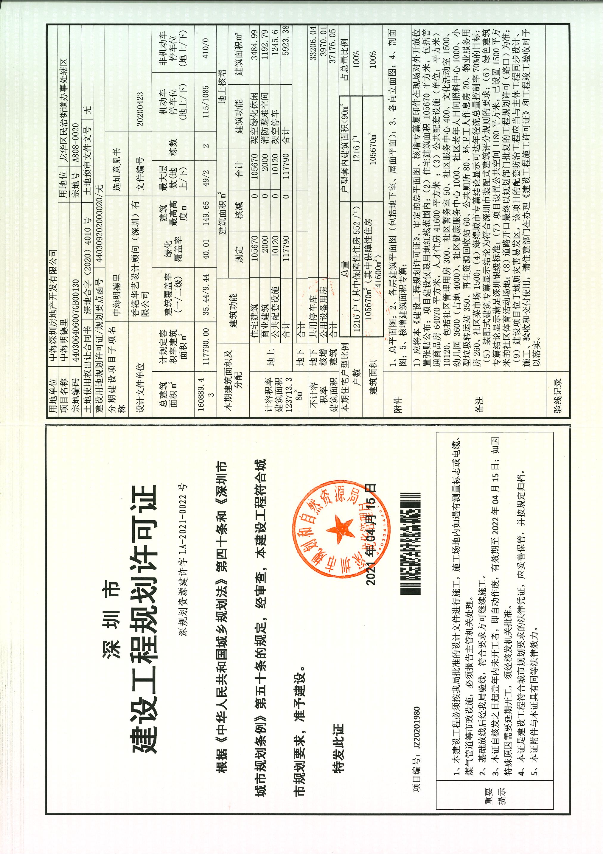 经深圳市规划和自然资源局龙华管理局审查,同意核发项目《建设工程规划许可证》(深规划资源建许字LA-2021-0022号)。根据《中华人民共和国城乡规划法》第四十条的规定,现将本次核发的《建设工程规划许可证》及总平面图予以公布。