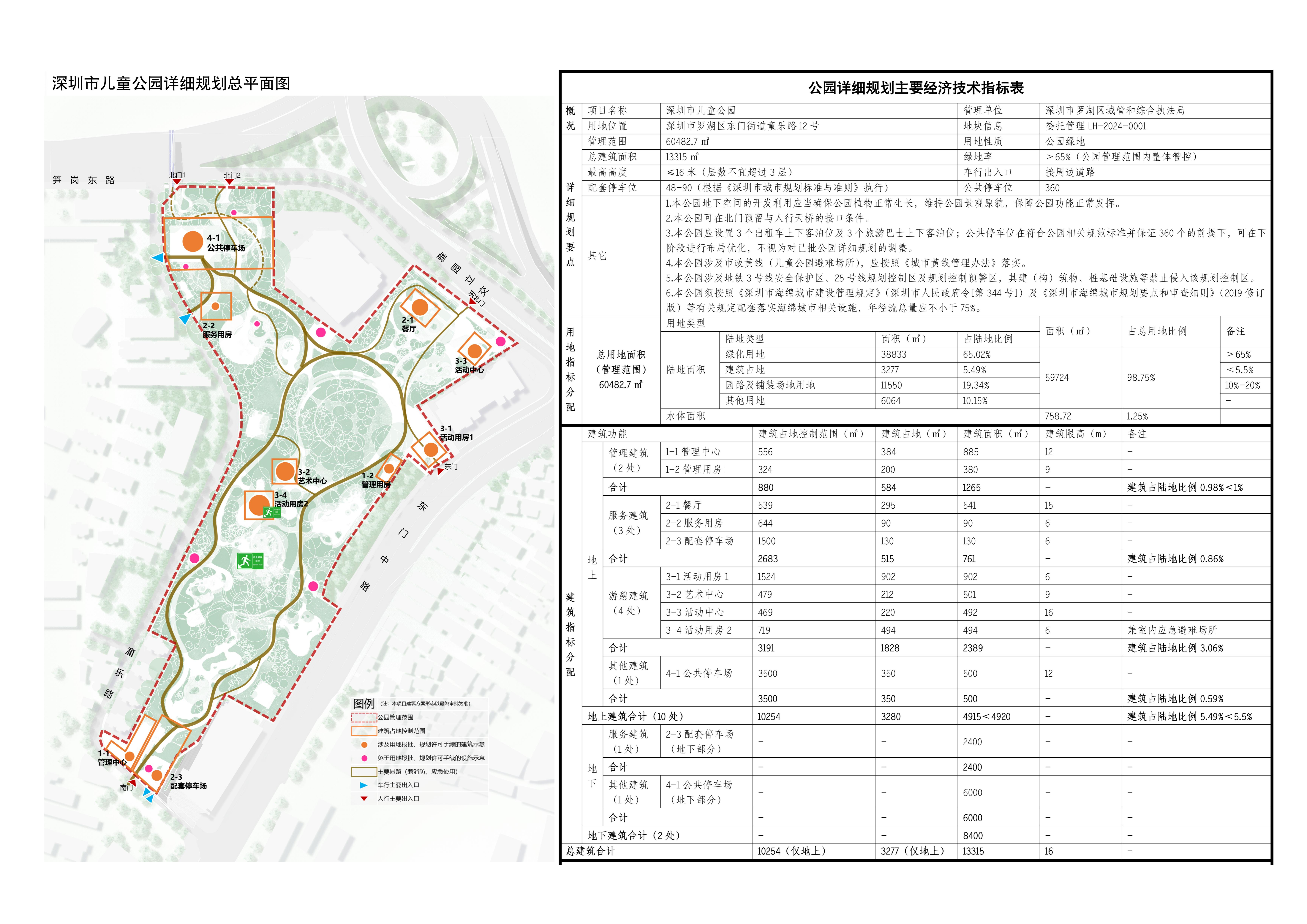 附件:深圳市儿童公园详细规划总平面图(含公园详细规划主要经济技术指标表)