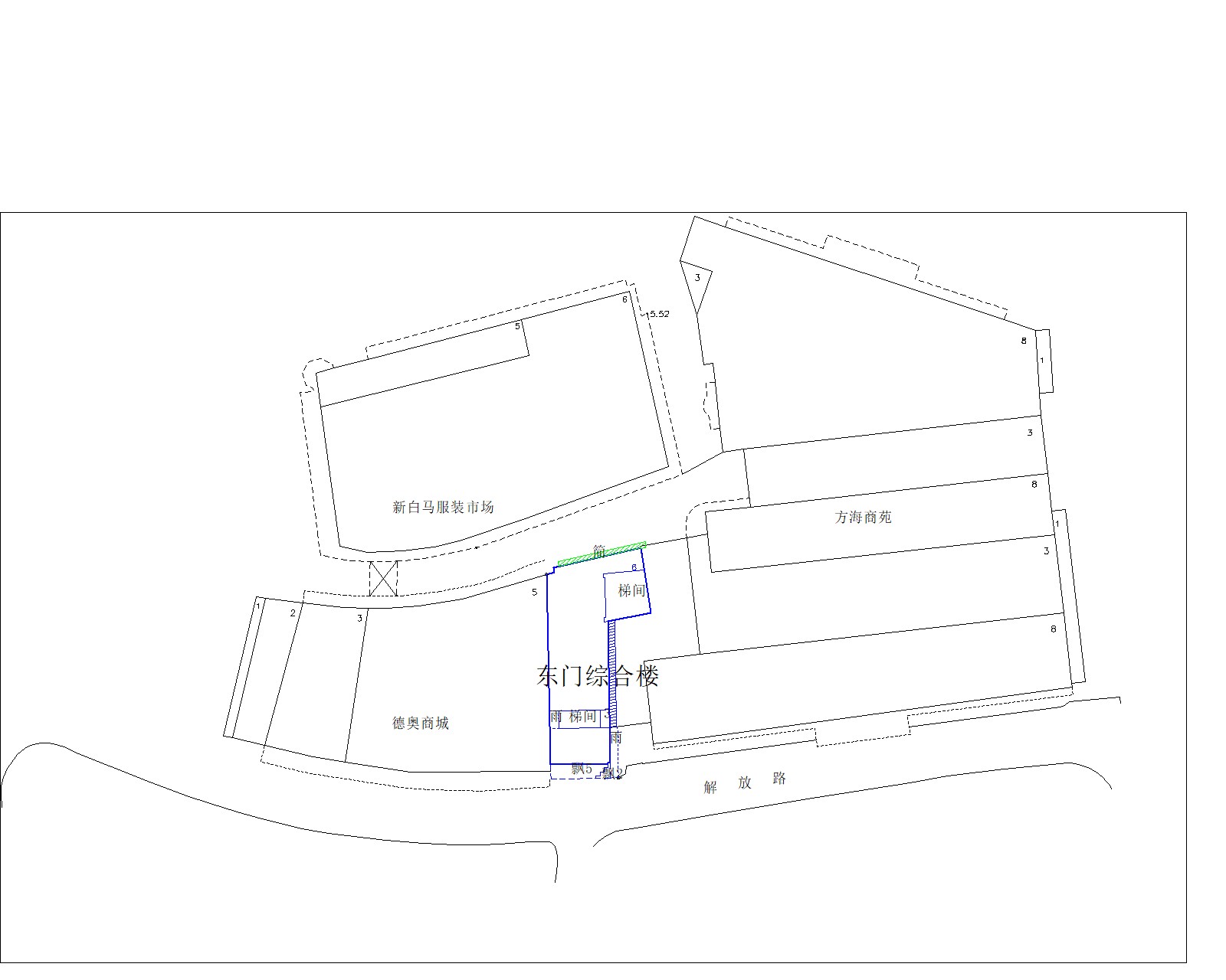东门综合楼位于罗湖区东门街道解放路,本次规划确认共1栋建筑物,总建筑面积2970.70平方米,功能为办公及附属用房,其中地上6层建筑面积2662.42平方米,地下1层建筑面积308.28平方米。规划确认仅对建筑功能、面积等予以确认,不作为权属证明文件。