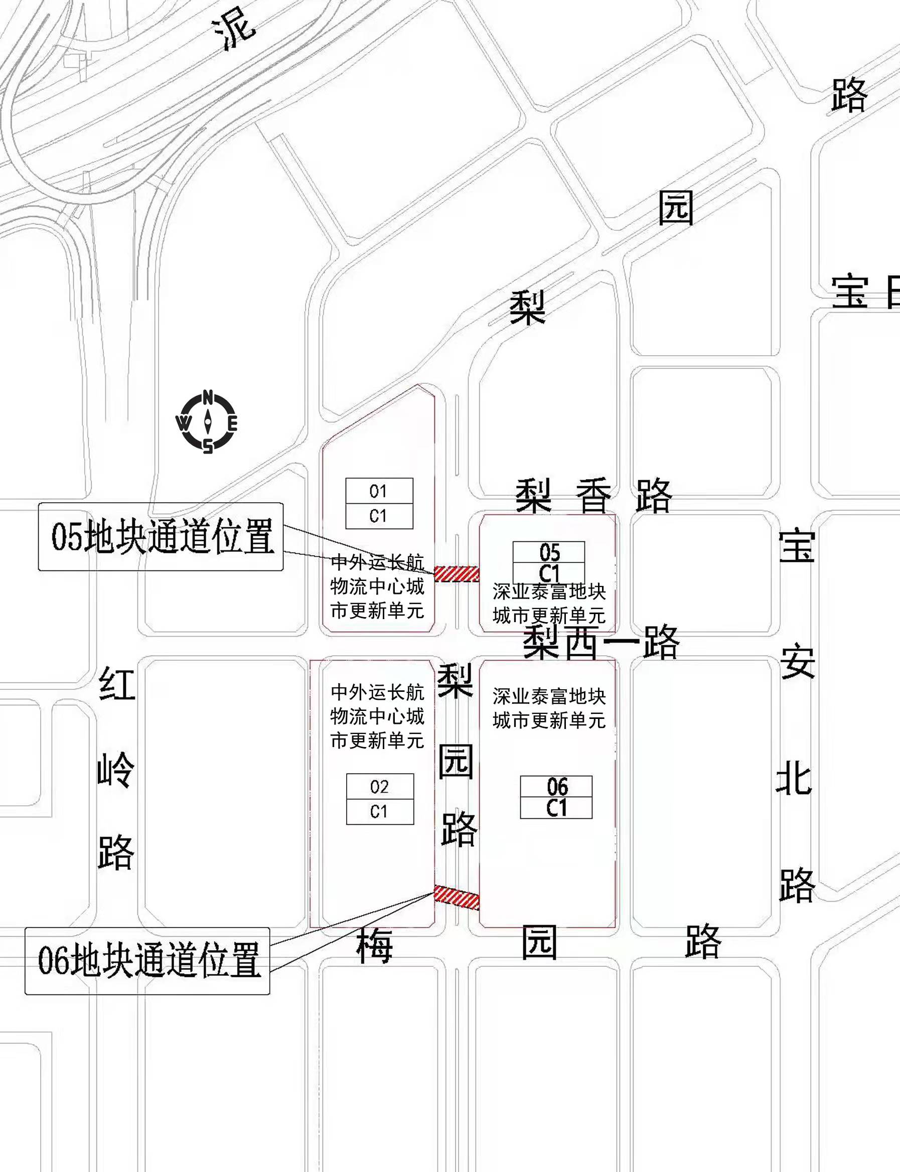 为完善片区慢行系统,实现周边项目地下空间互通互联,增强地下交通、商业空间使用效率,提升片区活力,根据《市规划国土委关于批准<罗湖区笋岗街道深业泰富地块城市更新单元规划>的通知》,拟在罗湖区笋岗街道深业泰富地块城市更新单元05地块西侧建设一条地下公共人行通道与中外运长航物流中心城市更新单元01地块连接,在06地块西侧建设一条地下公共人行通道与中外运长航物流中心城市更新单元02地块连接。该事项已经罗湖管理局2022年第2次局长办公会议审议通过,现依据《中华人民共和国城乡规划法》、《深圳市城市规划条例》等相关规定,予以公示如下: