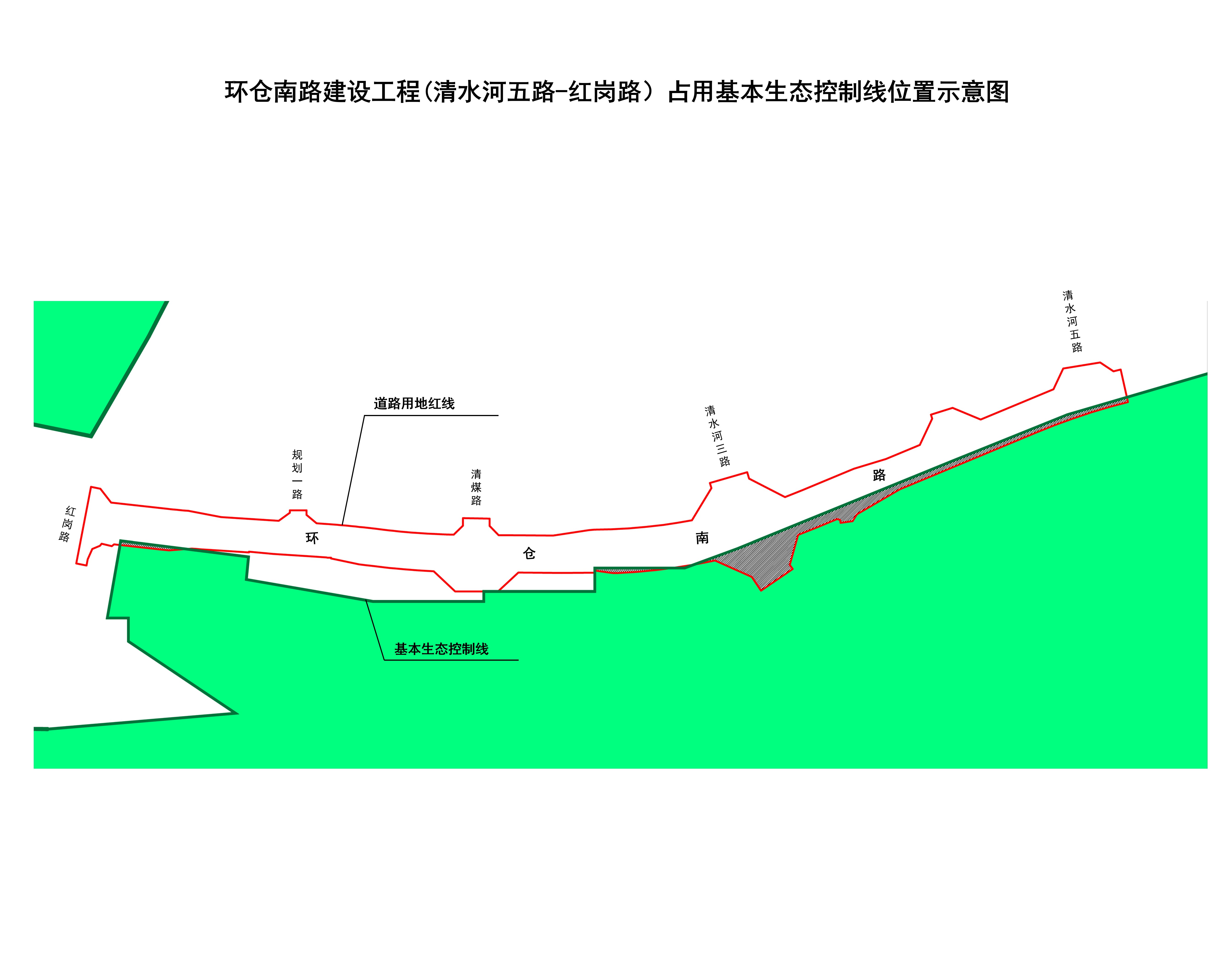 附件:环仓南路建设工程(清水河五路-红岗路)项目用地占用基本生态控制线示意图