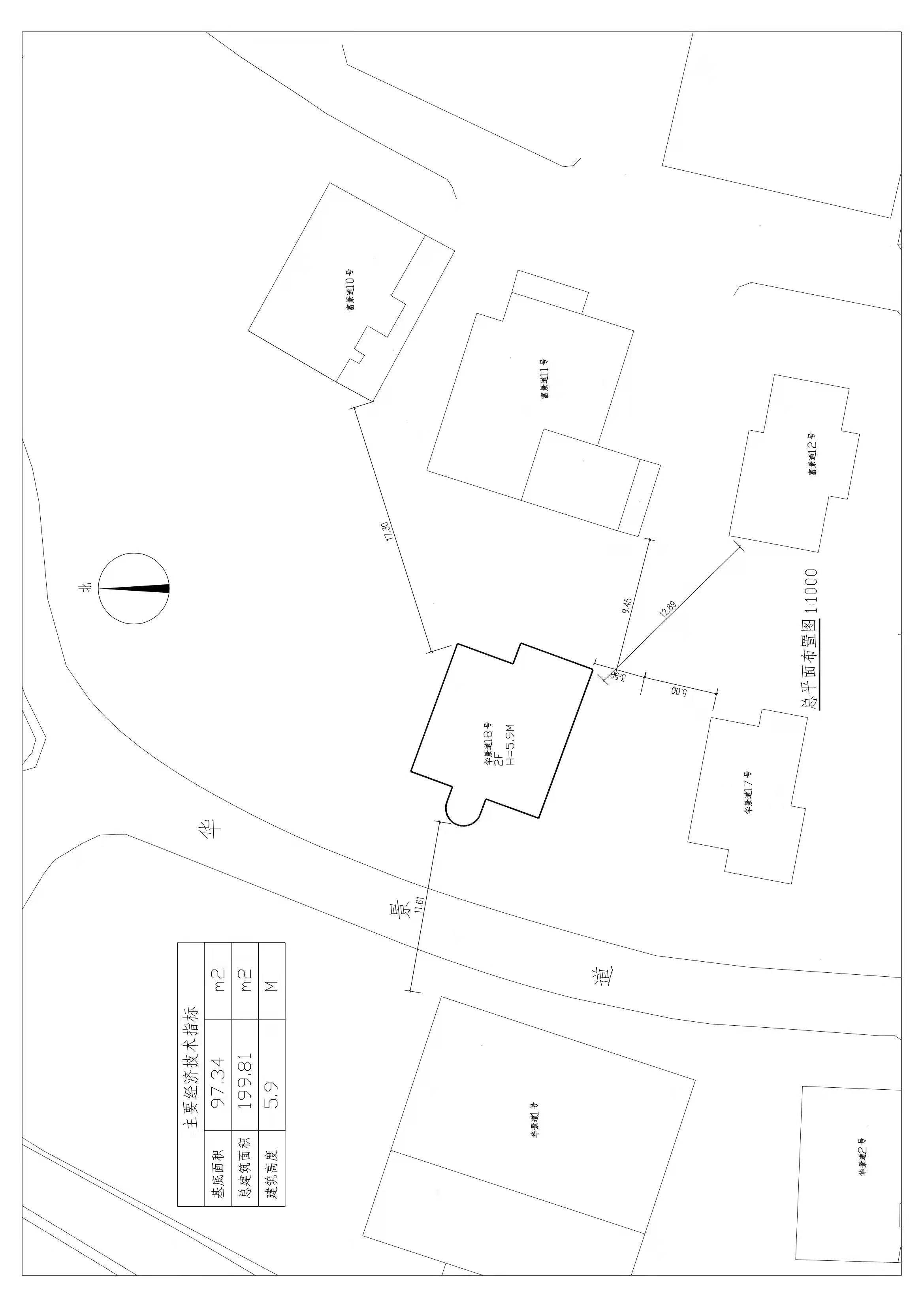 总建筑面积199.81平方米,建筑层数2层,建筑高度5.9米,建筑基底面积97.34平方米,重建建筑功能为原功能不变。