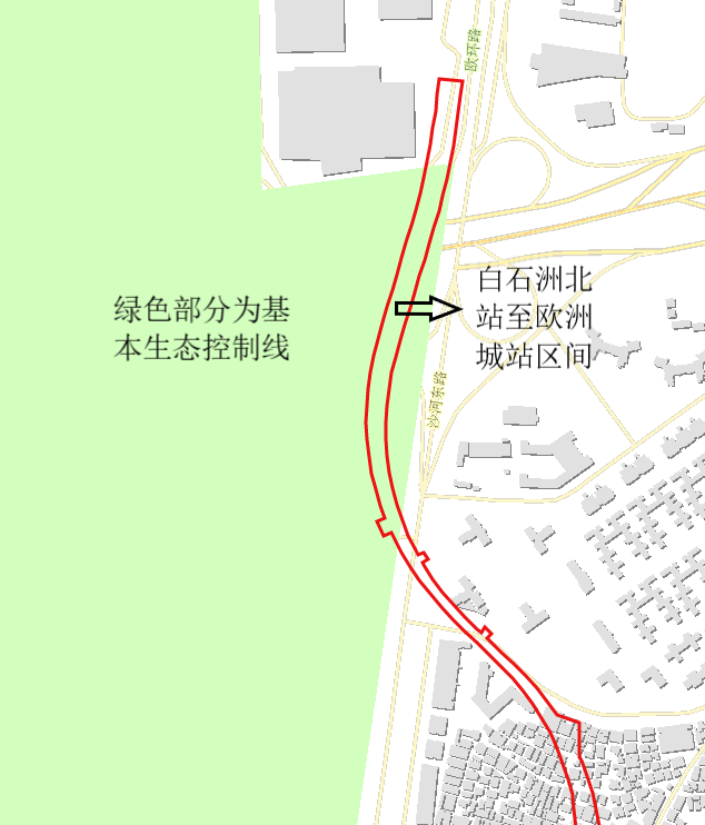 白石洲北站至欧洲城站区间项目拟用地部分位于深圳市基本生态控制线范围内(详见附件1)。同乐停车场及出入线项目拟用地部分位于深圳市基本生态控制线范围内(详见附件2)。