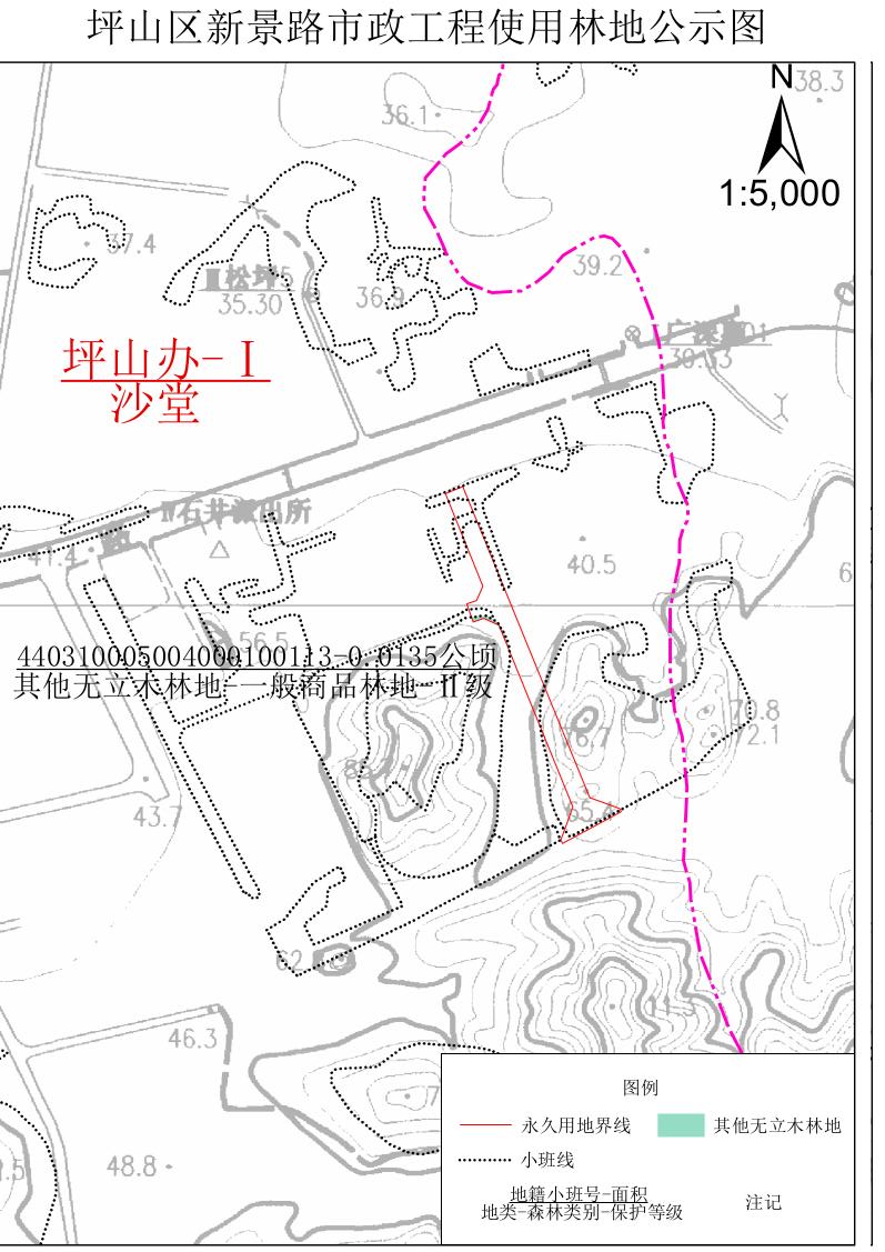 附件:坪山区新景路市政工程使用林地公示图