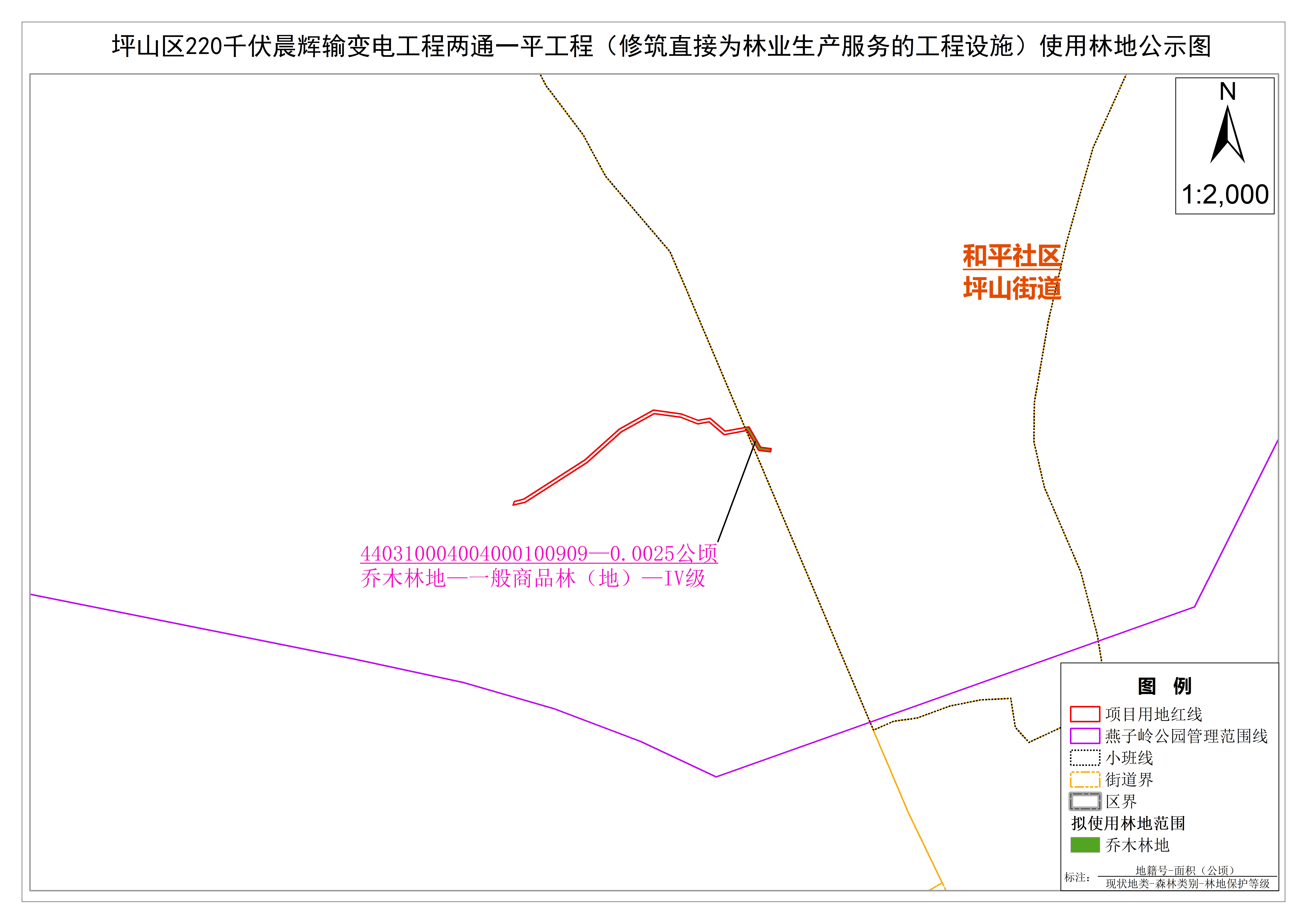 深圳市规划和自然资源局坪山管理局关于坪山区220千伏晨辉输变电工程两通一平工程(修筑直接为林业生产经营服务的工程设施)拟使用林地的公示