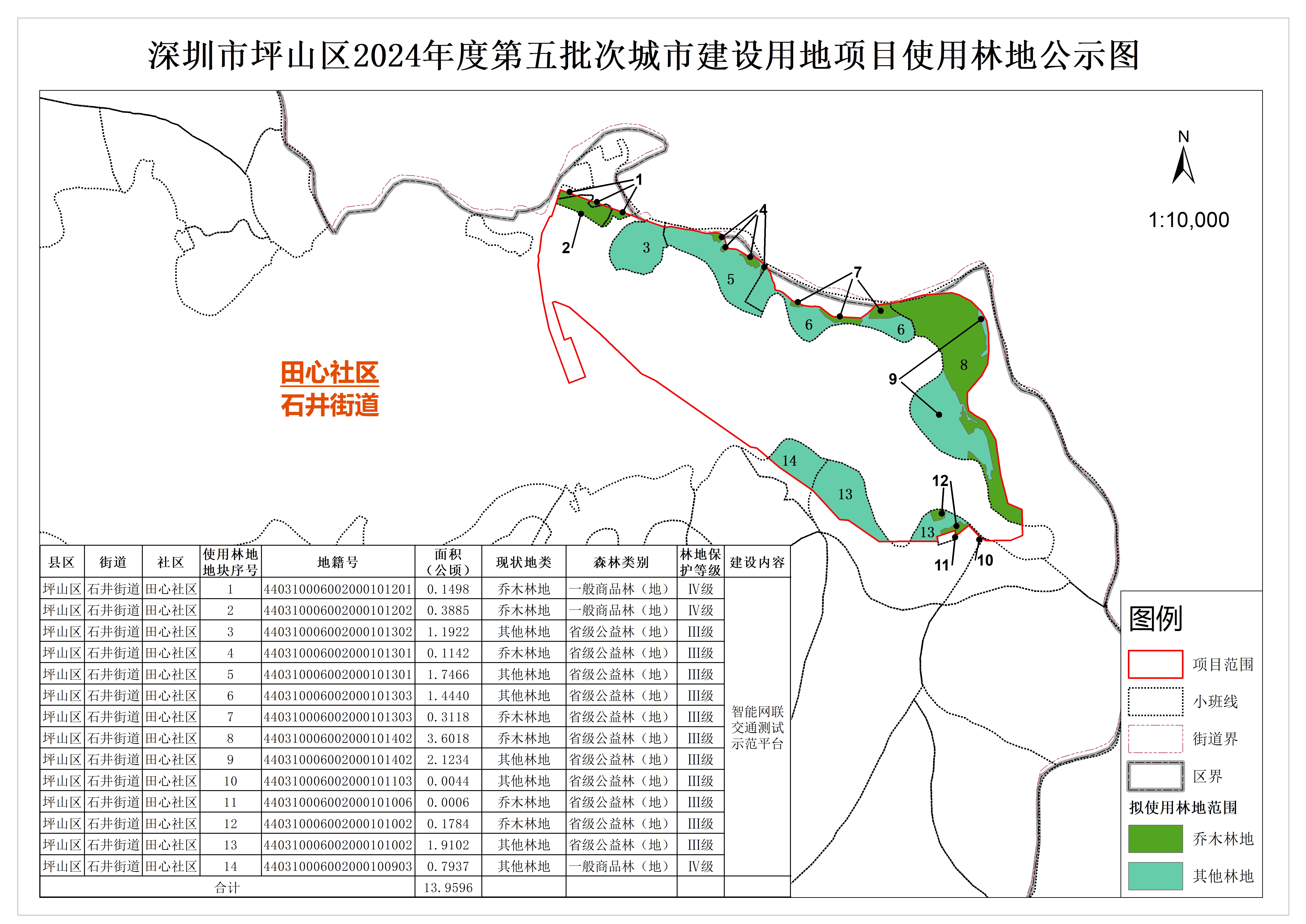 附件:深圳市坪山区2024年度第五批次城市建设用地项目使用林地公示图