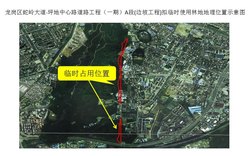 深圳市规划和自然资源局龙岗管理局关于龙岗区蛇岭大道-坪地中心路道路工程(一期)A段(边坡工程)拟临时使用龙岗区林地公示