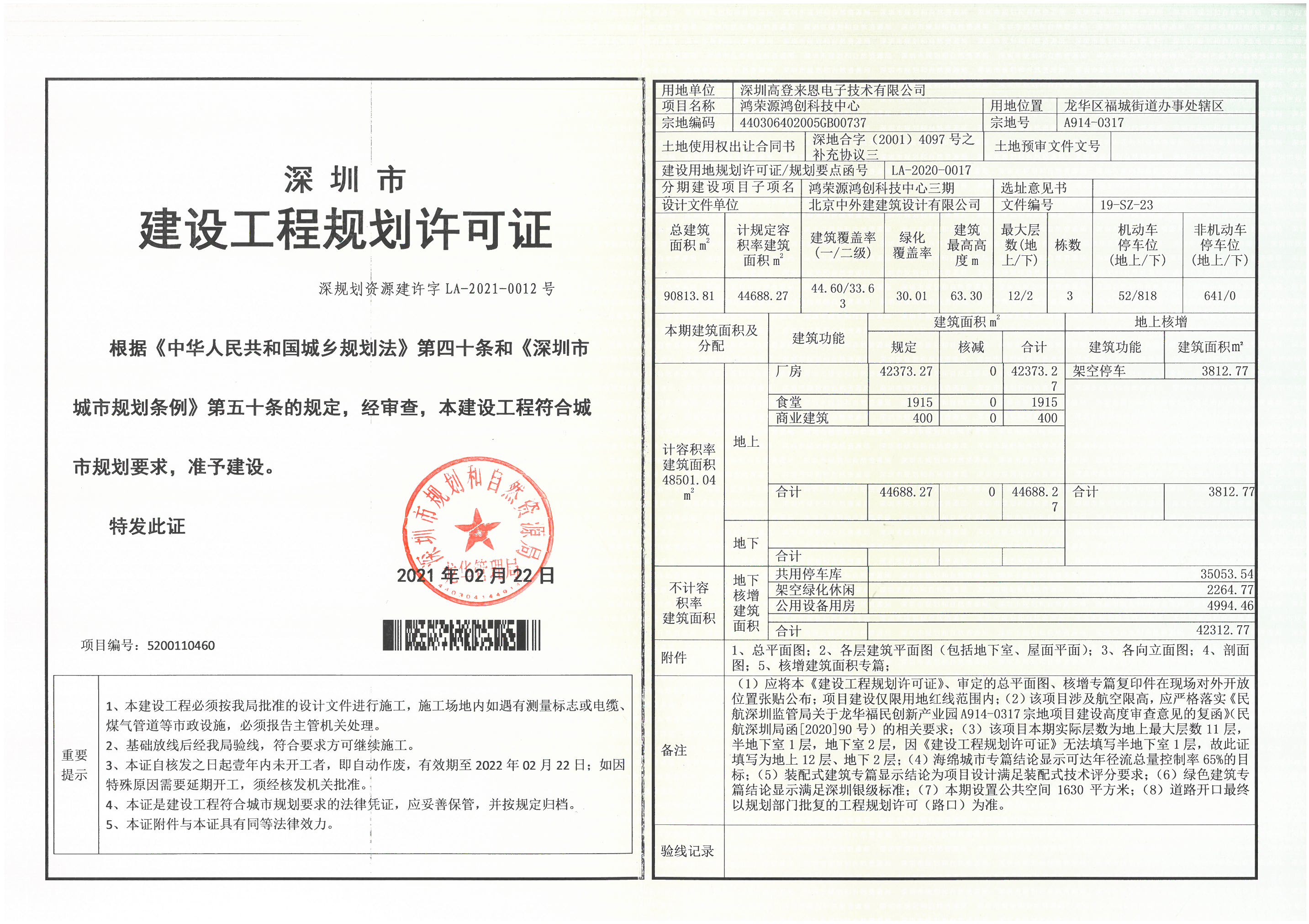 2.鸿荣源鸿创科技中心(宗地号:A914-0317)三期建设工程规划许可证