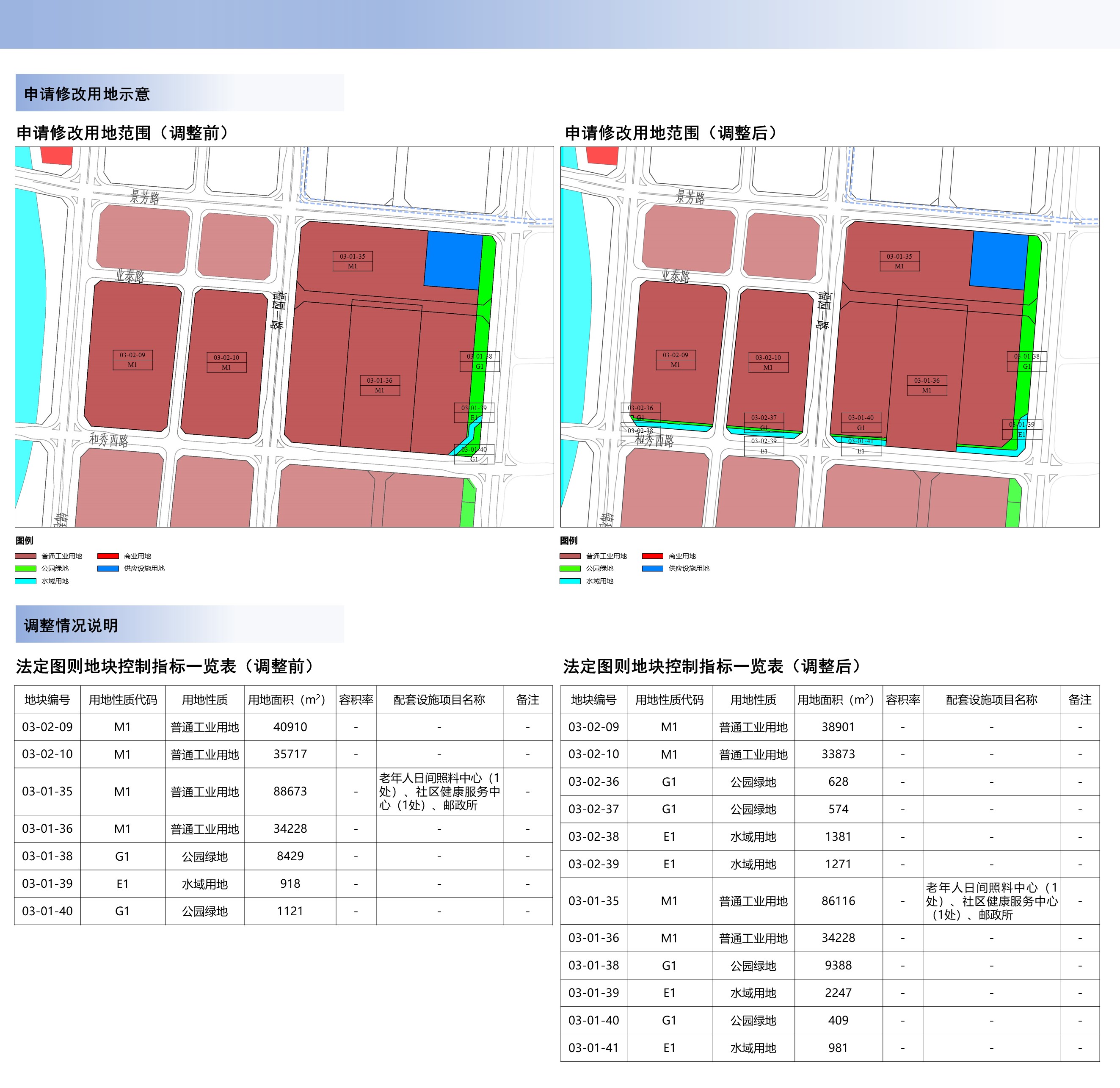 调整前后地块规划控制指标一览表及附图详见附件2。