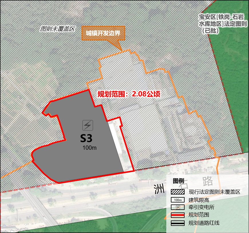 本项目位于宝安区航城街道洲石路以北、福洲大道以东。规划设计条件编制面积为20829平方米,拟规划为轨道交通用地、城市道路用地。