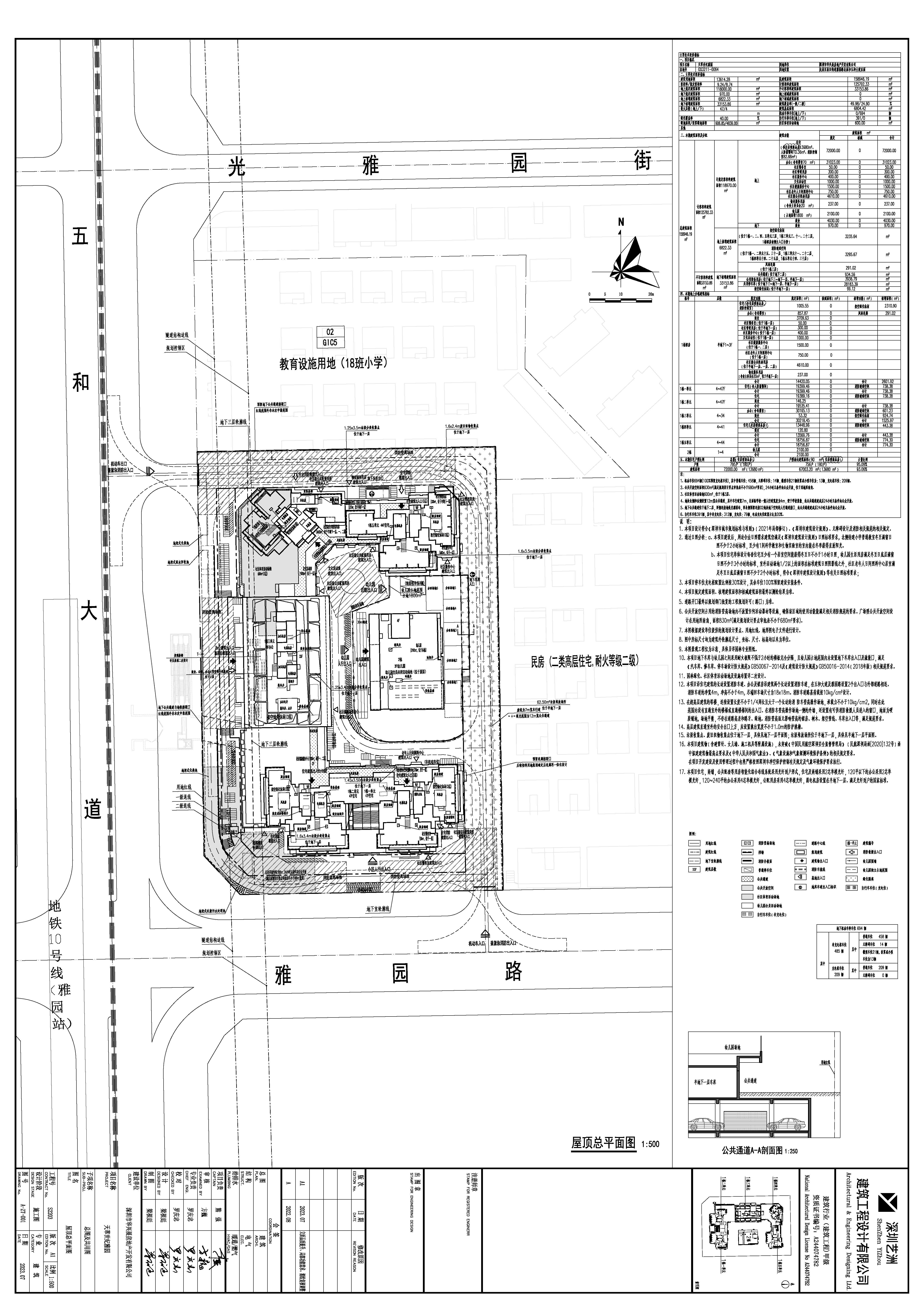 深圳市华兴展房地产开发有限公司来文申请办理天萃世纪雅园项目的建设工程规划许可变更,项目位于坂田街道,用地面积13614.28平方米,于2024年7月5日取得建字第建字第 4403072024GG0145453(改1)号《建设工程规划许可证》。本次申请修改内容涉及已批总平面图相关内容调整(详见云线圈注部分)。
