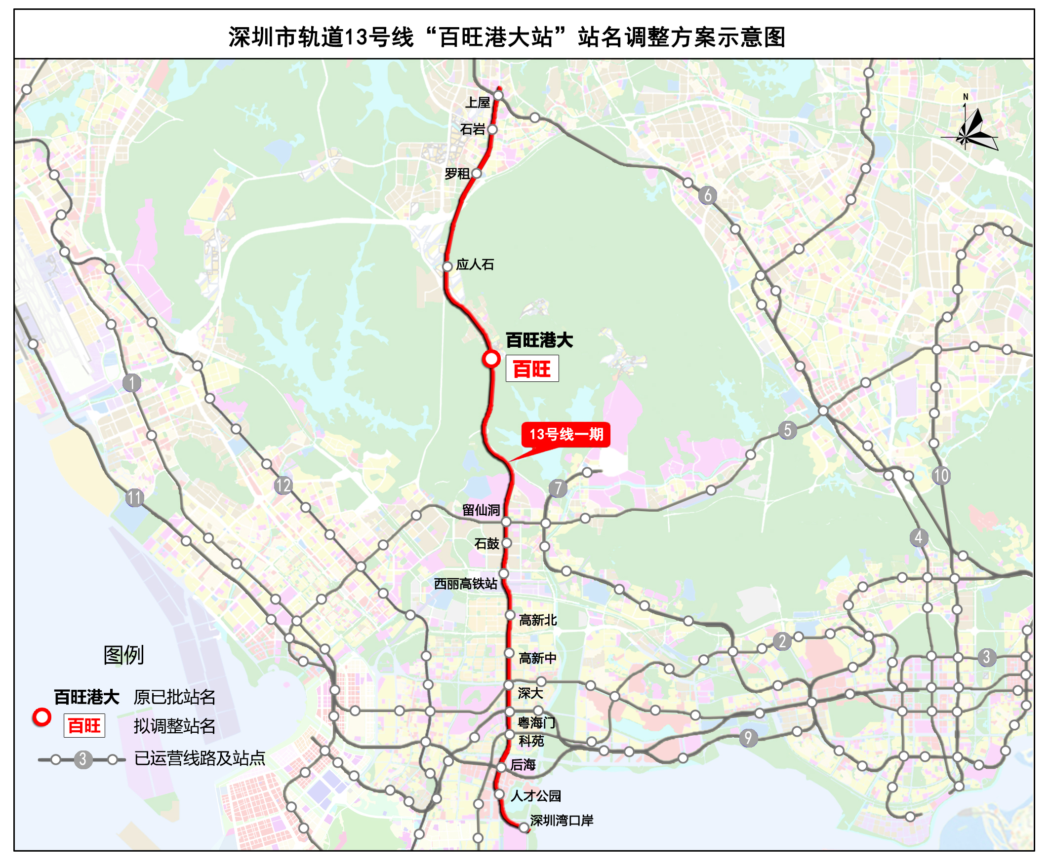 深圳市规划和自然资源局关于深圳市轨道13号线“百旺港大站”站名调整方案公示的通告