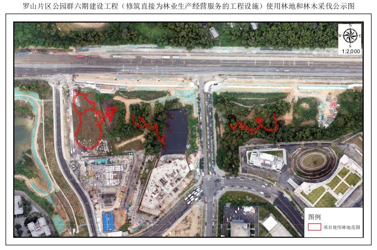 附件:罗山片区公园群六期建设工程(修筑直接为林业生产经营服务的工程设施)使用林地和林木采伐公示图