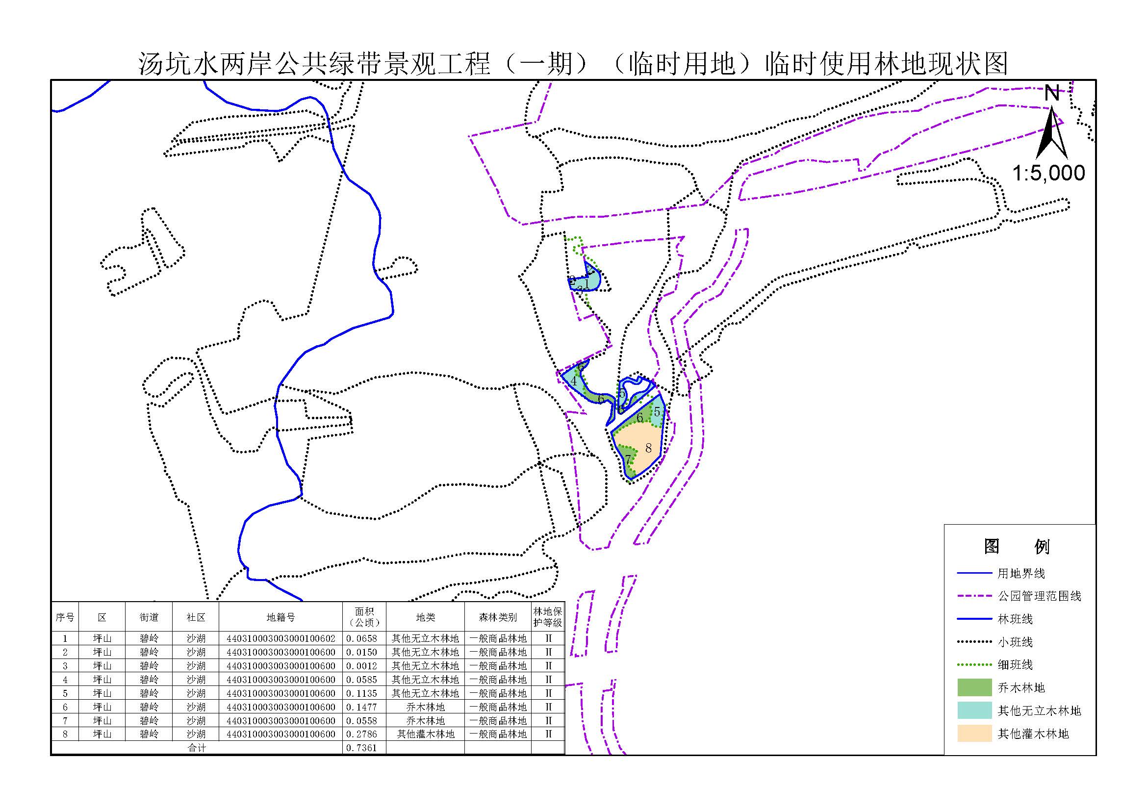 深圳市规划和自然资源局坪山管理局关于汤坑水两岸公共绿带景观工程(一期)(临时用地)拟临时使用林地的公示