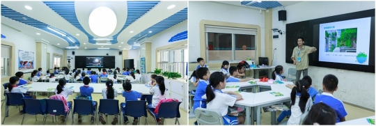 活动现场邀请到了深圳市蓝色海洋环境保护协会秘书长马海鹏为同学们进行授课,从地理、地质、环保、自然资源等方面开展科普。同时,活动还通过纪录片展示地质地貌的新、奇、特、美,在引领同学们感受大自然神奇魅力的同时,有效激发了同学们的学习兴趣。授课过程中,讲师还将地球科学知识、环保知识与深圳自然资源市情相结合。“深圳市的森林覆盖率为多少?”“深圳有什么绿色建筑?”面对讲师的提问,同学们纷纷举手回答,积极表达自己对于自然资源保护的看法。同学们在一问一答中,既对深圳的自然资源现状有了更深入的了解,又增强了环境保护意识。