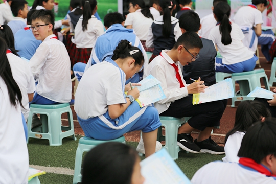 活动现场葵涌中心小学的学生们对本次世界地球日主题宣传活动表现出无限热情与好奇,通过对宣传折页与宣传小手册的认真翻阅,积极参与知识问卷填写,对我国世界地球日相关知识提出许多问题,现场工作人员均一一进行解答。
