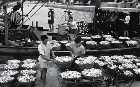 60年代深圳以出海作业为主的渔民村丰收的情景(图源网络)