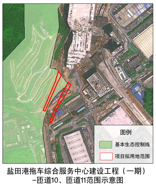 盐田港拖车综合服务中心建设工程(一期)-匝道10、匝道11工程项目正在开展前期核查工作,该项目位于盐田区盐田街道,用地面积约3893平方米。经核查,该项目拟用地范围涉及基本生态控制线约1824平方米。