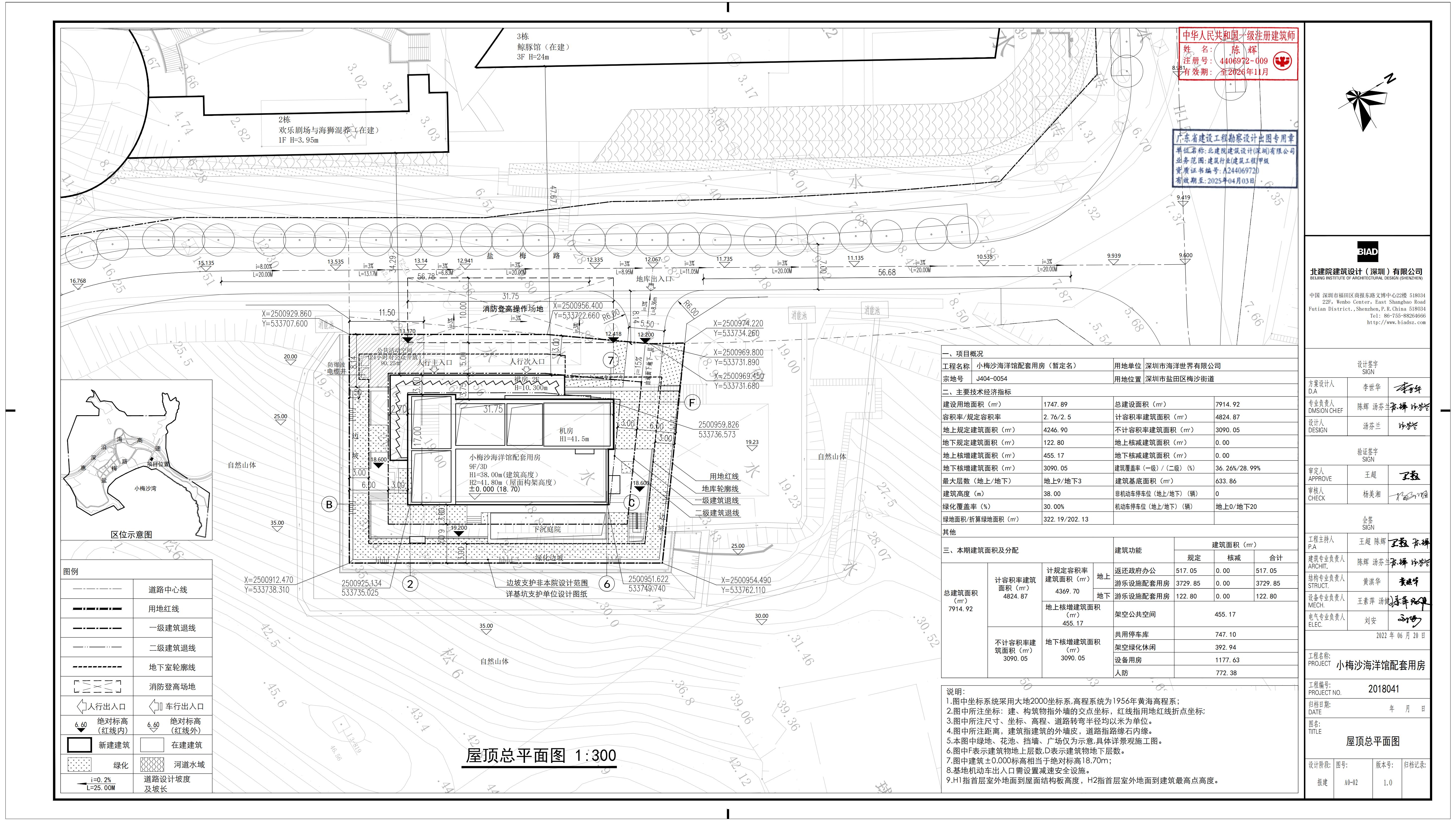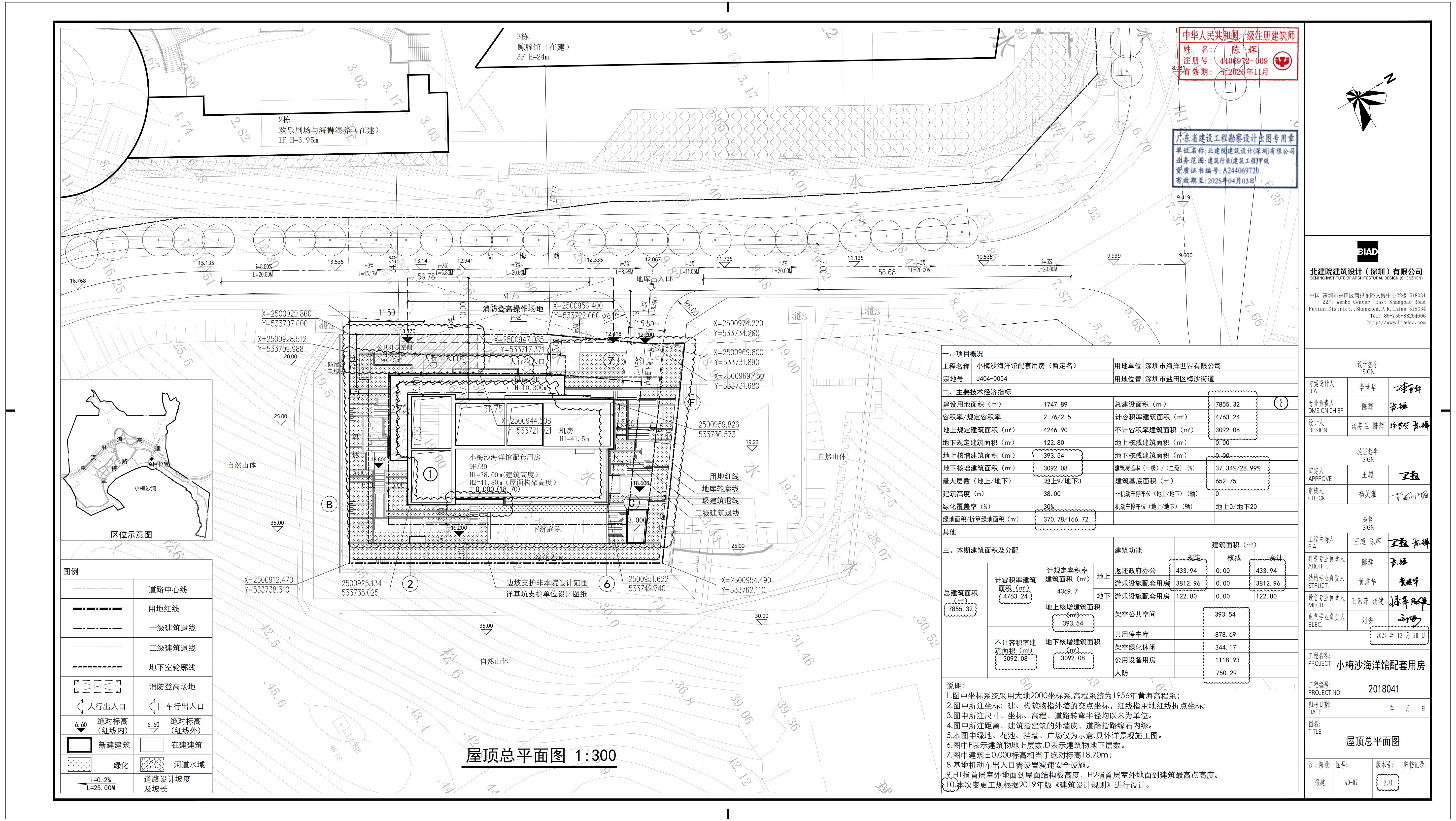 小梅沙海洋馆配套用房项目位于盐田区梅沙街道盐梅路附近,宗地号J404-0054,用地面积1749.89㎡,土地用途为游乐设施用地,用地单位为深圳市海洋世界有限公司。现用地单位申请对原屋顶总平面图进行修改,修改内容详见图纸圈云部分: