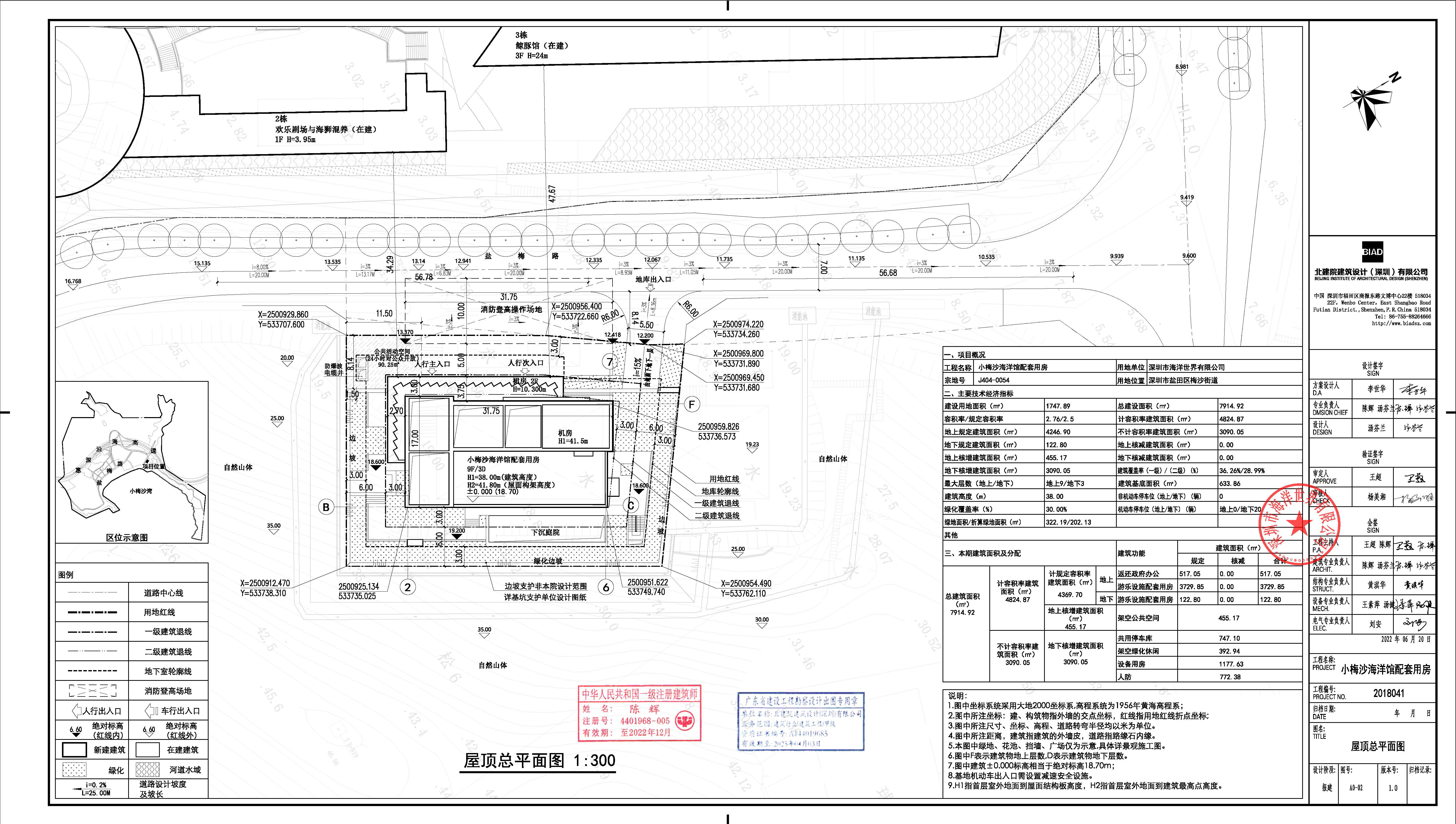 小梅沙海洋馆配套用房项目位于盐田区梅沙街道小梅沙盐梅路,土地用途为游乐设施用地,宗地号为J404-0054,用地面积1747.89㎡,总规定建筑面积4369.7㎡,其中游乐及配套设施3852.65㎡、办公(无偿移交政府)517.05㎡。