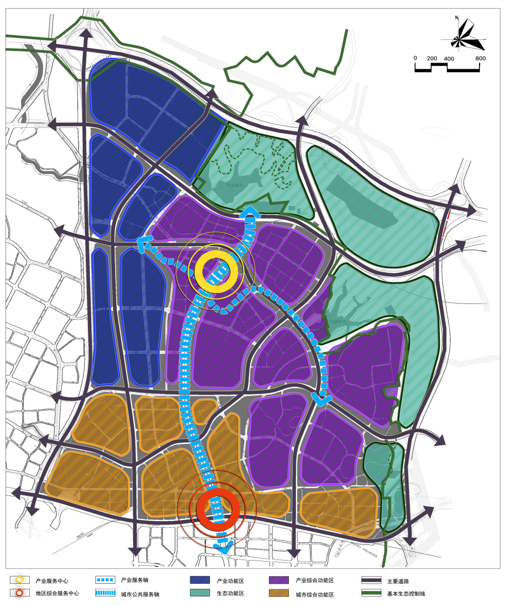(2) 产业服务功能区:服务于研发办公和高新制造产业的产业服务中心。