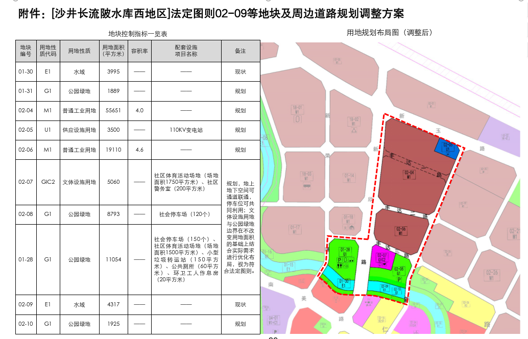 附件:[沙井长流陂水库西地区]法定图则02-09等地块及周边道路规划调整方案