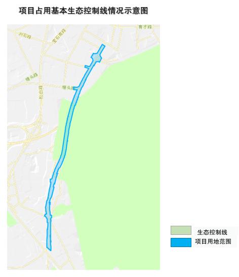 宝石路二期工程约有50610.16平方米位于基本生态控制线范围内。根据《深圳市基本生态控制线管理规定》(深圳市人民政府第145号令,2013修订版),该工程符合基本生态控制线内“与生态环境保护相适宜的重大道路交通设施”要求。