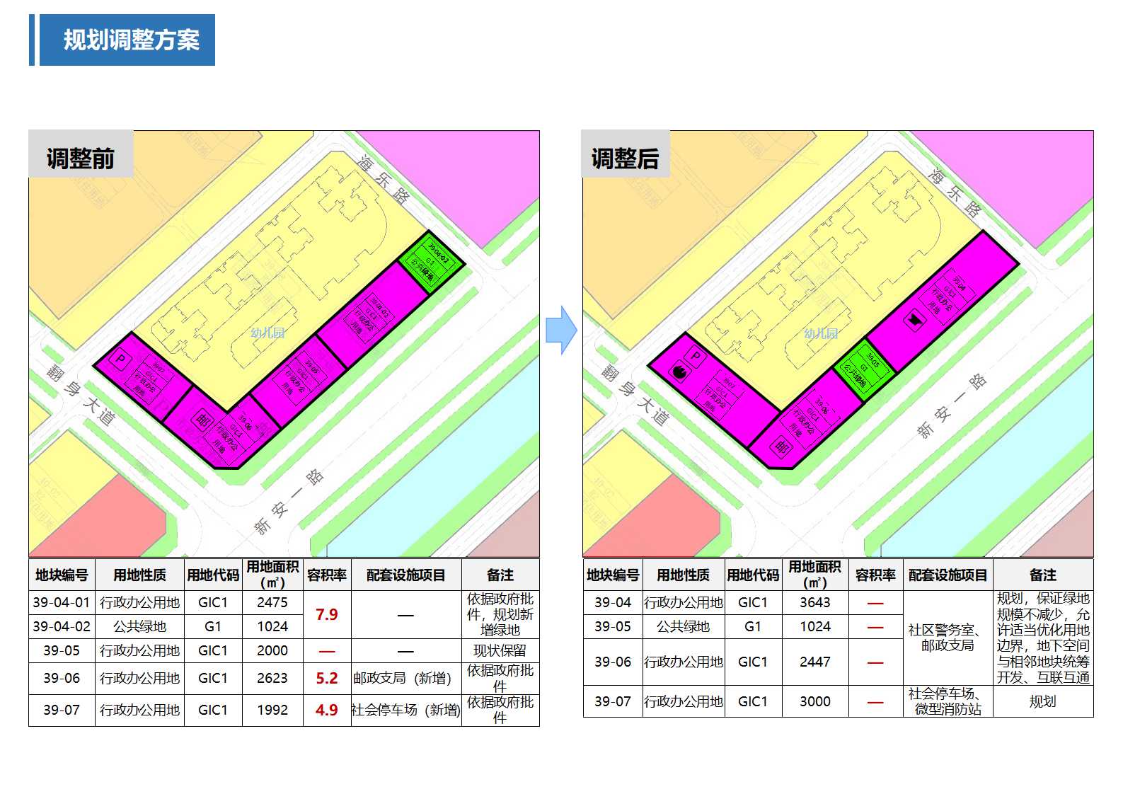 附件:[新安南地区]法定图则39-04-01、39-04-02、39-05、39-06、39-07地块规划调整前后对比图