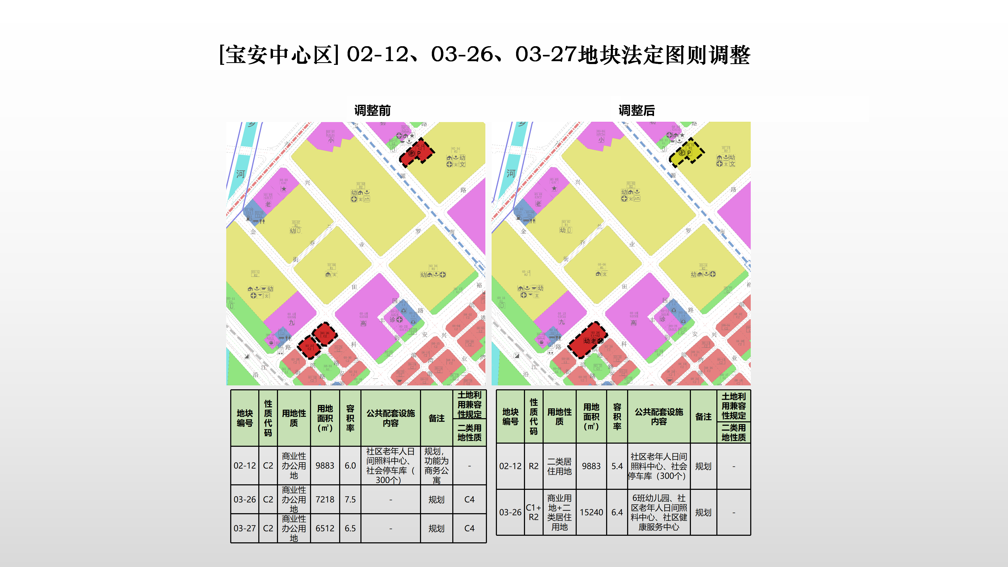 根据已批准的[宝安中心区]法定图则,拟调整的地块规划情况如下: