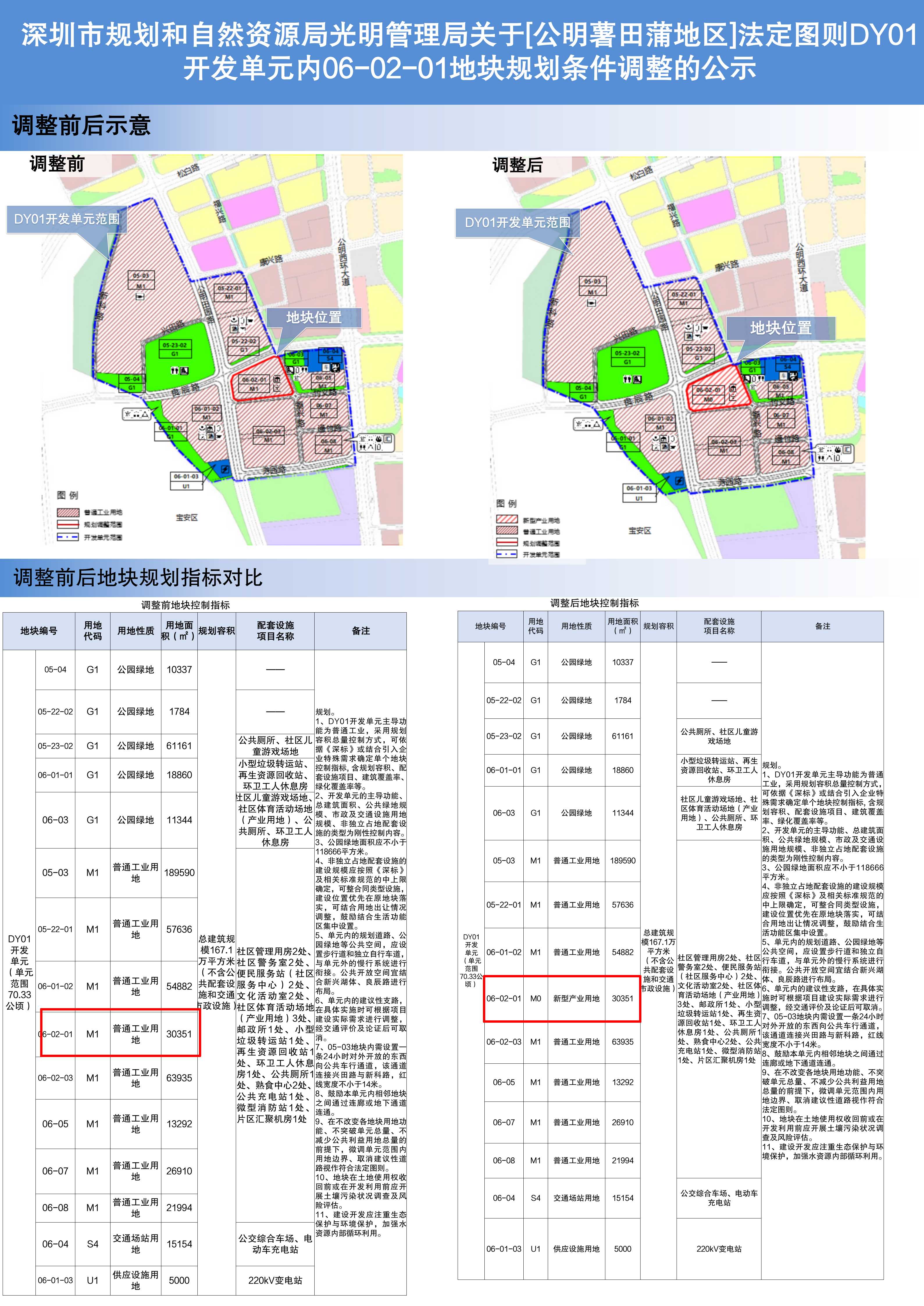 深圳市规划和自然资源局光明管理局关于[公明薯田蒲地区]法定图则DY01开发单元内06-02-01地块规划条件调整的公示