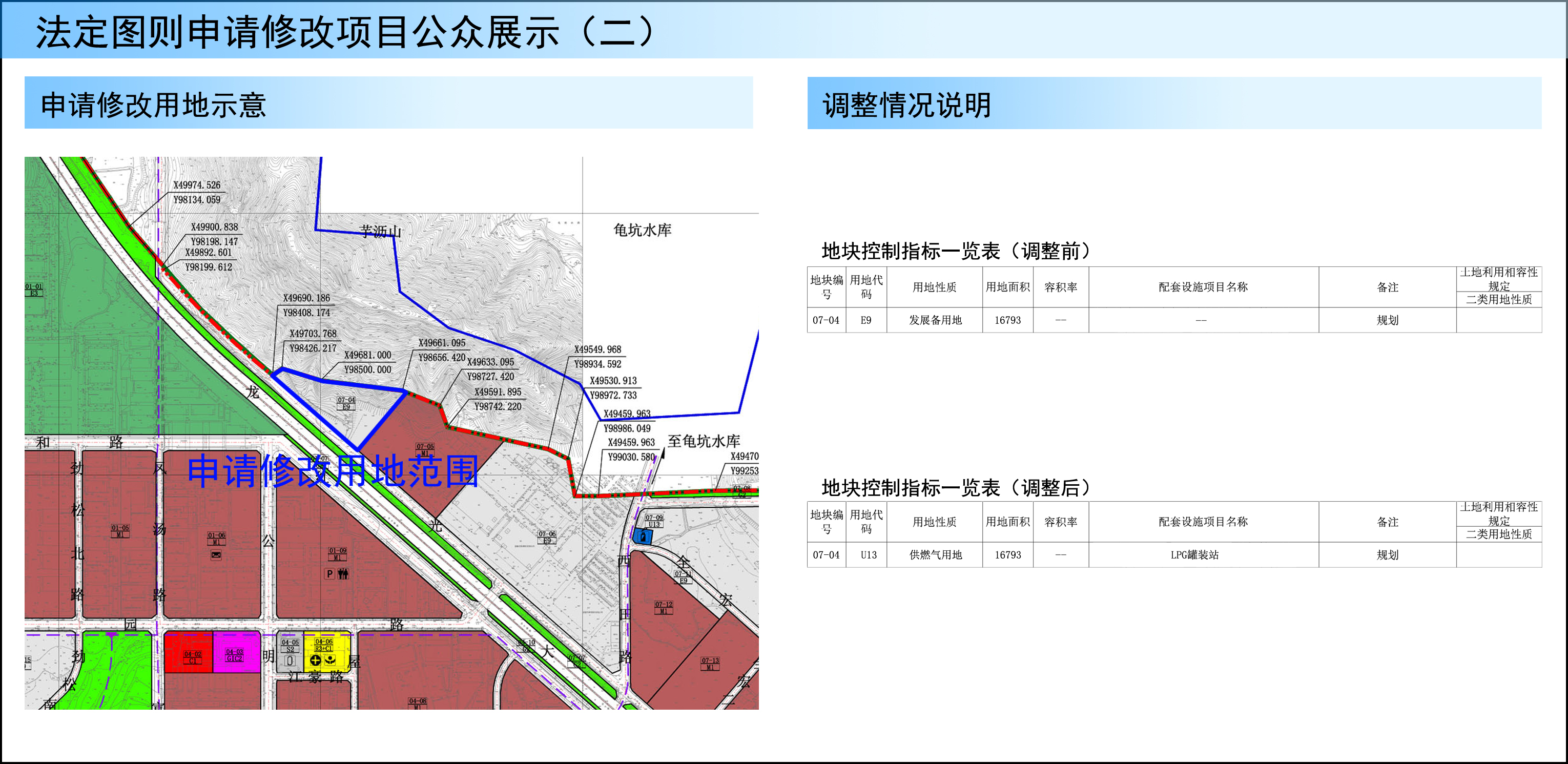 2.拟将02-23地块功能置换到[公明北地区]法定图则07-04地块内,将07-04地块规划用地性质调整为供应设施用地,用地面积16793平方米,配套LPG灌瓶站,备注“规划”。