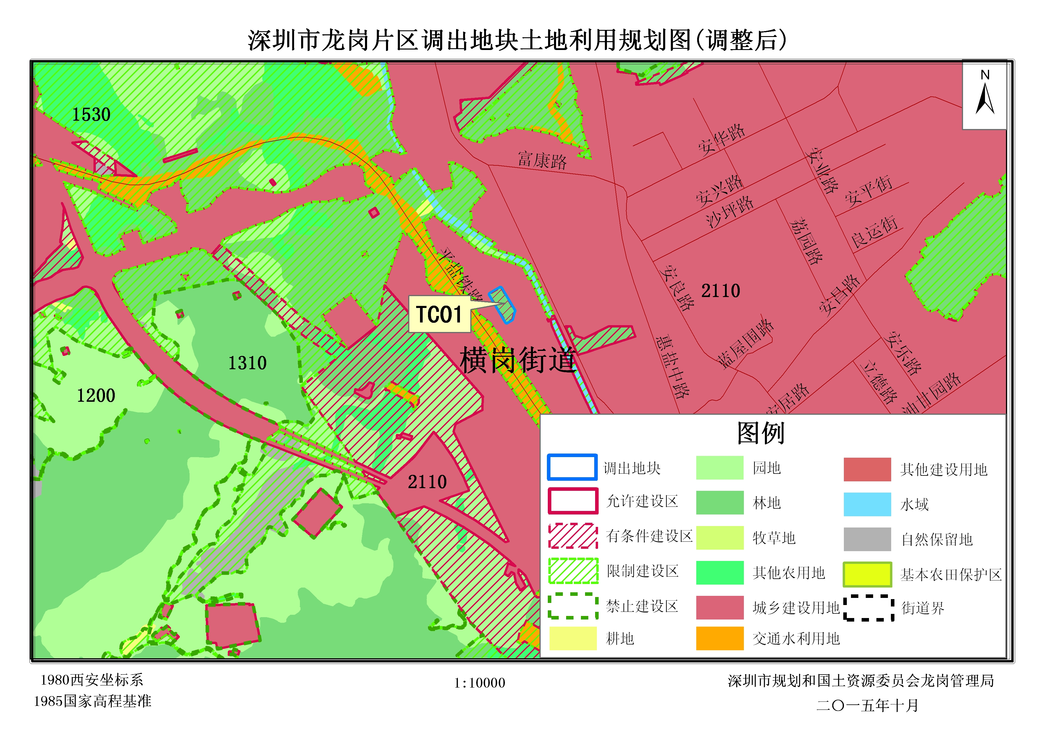 (三)本次有条件建设区使用,调入和调出地块用地面积相等,从有条件建设区调入允许建设区面积2977.49平方米,从允许建设区调出为有条件建设区面积2977.49平方米,龙岗辖区规划建设用地总规模没有增加,城乡建设用地指标没有突破,符合有条件建设区使用原则。本方案调入、调出地块调整前后土地利用总体规划图详见附件。
